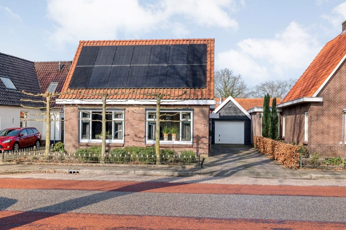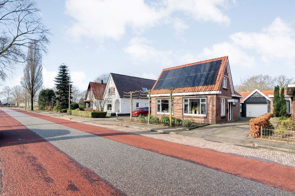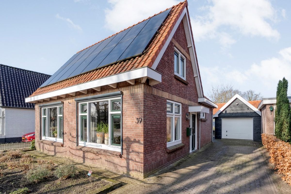 De buitenkant van het huis – en vooral alles wat daaromheen te vinden is – zal menig hart sneller doen kloppen. Stap naar buiten en je stuit op een royale, vrijstaande garage met elektrische garagedeur; ideaal voor wie graag aan auto’s sleutelt, of gewoon een veilige plek zoekt voor de fietsen, motor, caravan of gereedschappen. En dat is nog niet alles: er is een praktische vliering (extra bergruimte dus!), een apart schuurgedeelte én een handige aangrenzende overkapping/veranda waar je tot laat in het najaar nog kunt genieten van een hapje en een drankje.