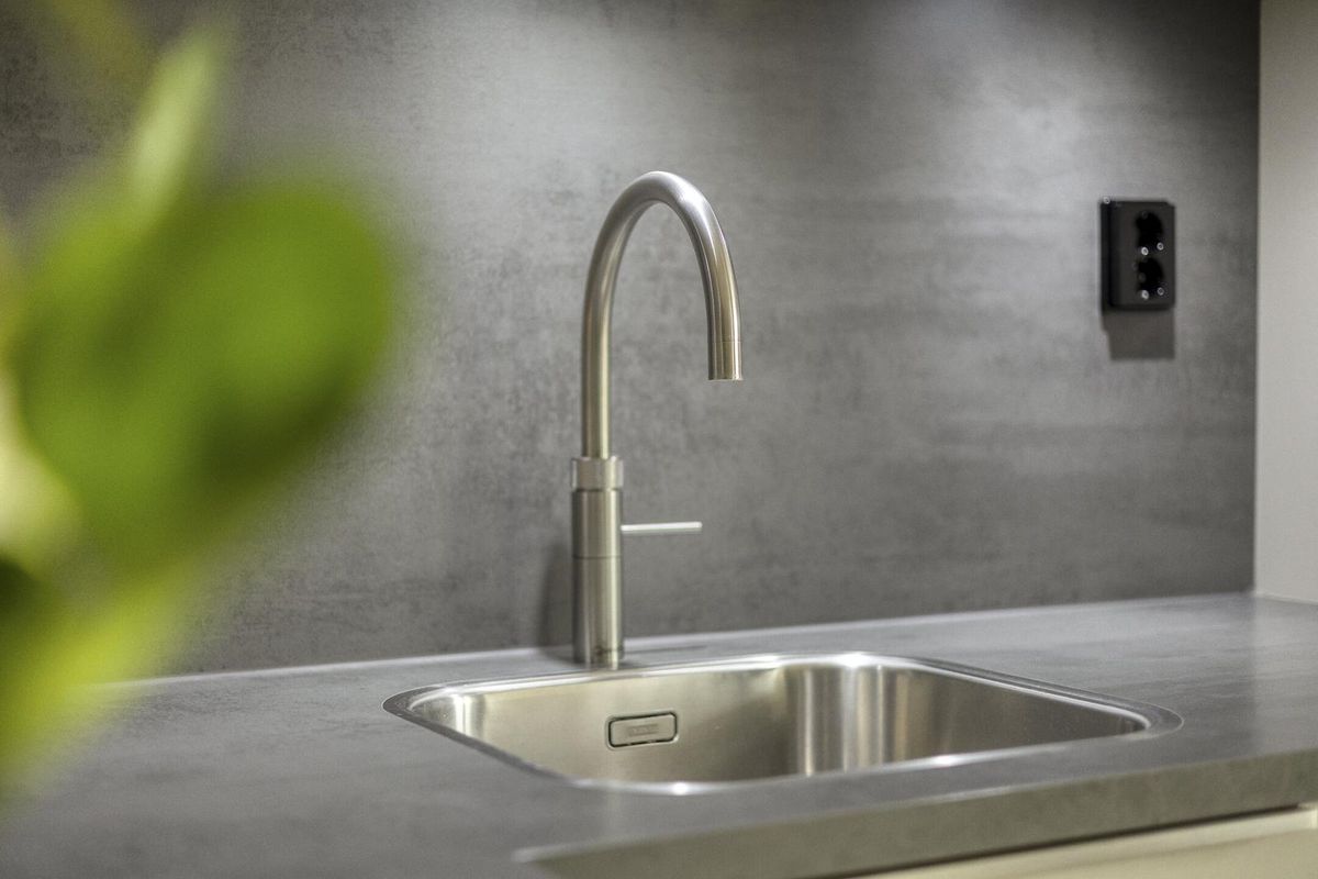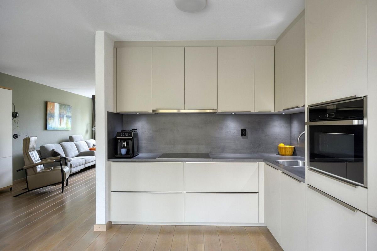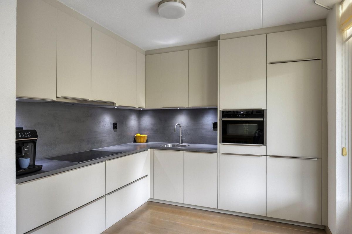 - De keuken (2018) is voorzien van een kookplaat, afzuigkap, combi-ovenmagnetron, koel-vriescombinatie.