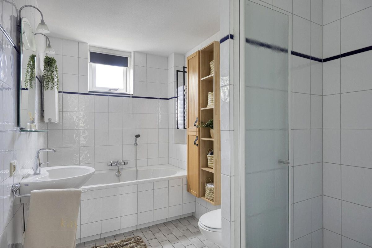 Vanaf de overloop is er toegang tot de badkamer en drie slaapkamers. Alle slaapkamers zijn netjes afgewerkt en beschikken over voldoende lichtinval, wat zorgt voor een prettige en rustige uitstraling. De badkamer is compleet uitgevoerd en voorzien van een ligbad, aparte douche, toilet en wastafelmeubel.