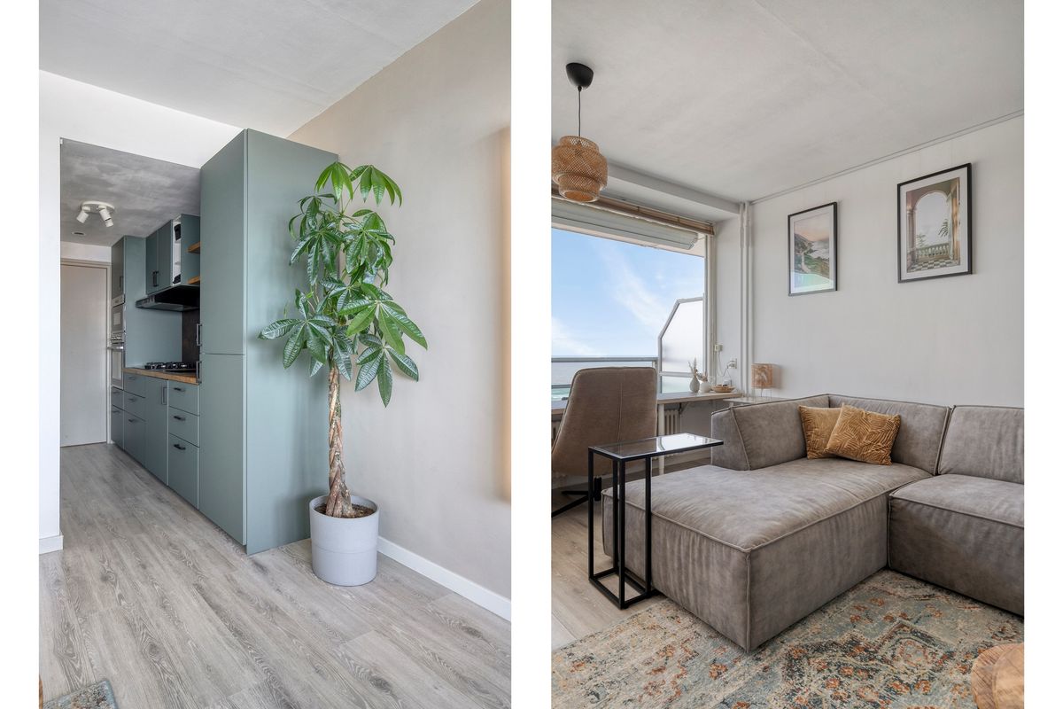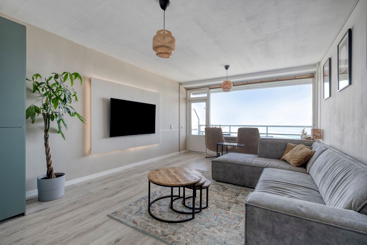 What a view. Every day feels like a new postcard, with direct views of the sea, the beach, the dunes, and the village of Zandvoort. This charming 2-room apartment of 47 m² is located on the 10th floor of the striking apartment complex De Rotonde and features a spacious southwest-facing balcony. Whether summer or winter, this is a fantastic place to live for beach lovers, walkers, and water sports enthusiasts. The apartment is delivered fully furnished in a coastal style: light wood, calm tones, modern furniture, a comfortable 160x200 bed, two modern smart TVs, and a stylish interior with a boutique hotel feel. Move-in ready for a fresh start by the sea.