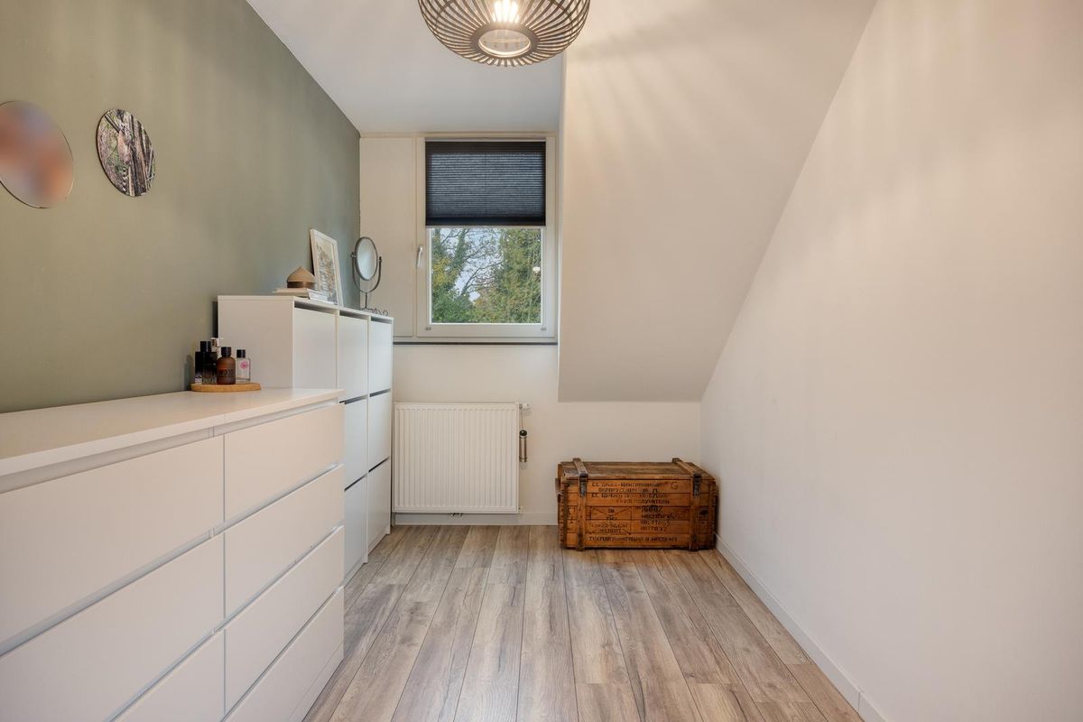 Slaapkamer 2 (gelegen aan de achterzijde, 7m²) met uitzicht op de tuin en de het groen van het achtergelegen pad.