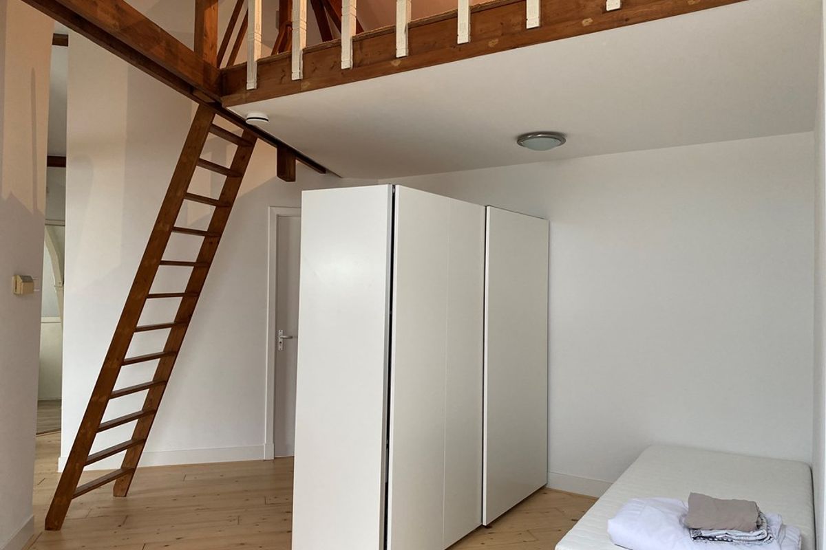 Ruim 3-kamer appartement van circa 82m2, 2 afgesloten slaapkamers en 1 loft verdieping te bereiken vanaf de woonkamer met open keuken.