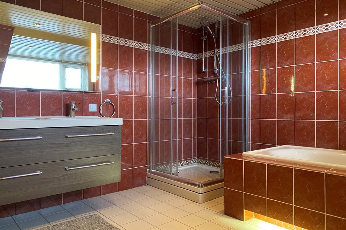 - ruime badkamer met douche, ligbad en wastafel meubel