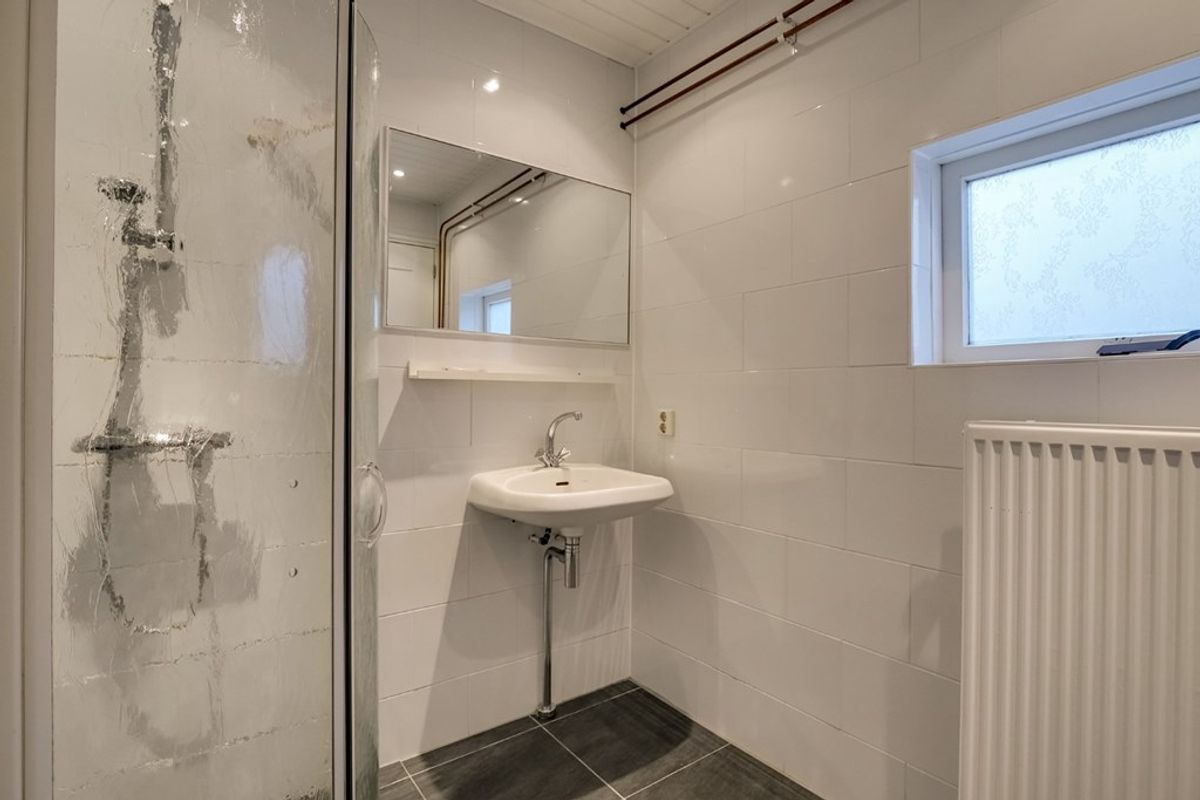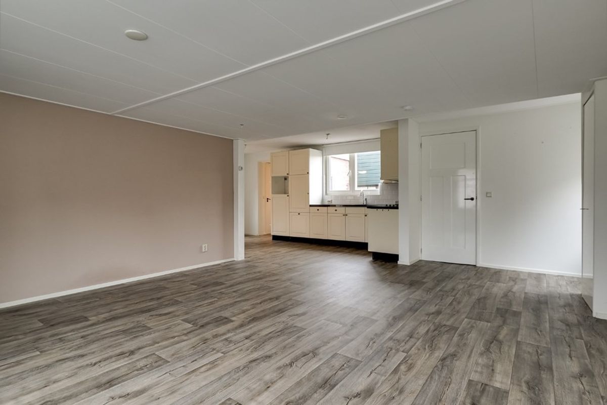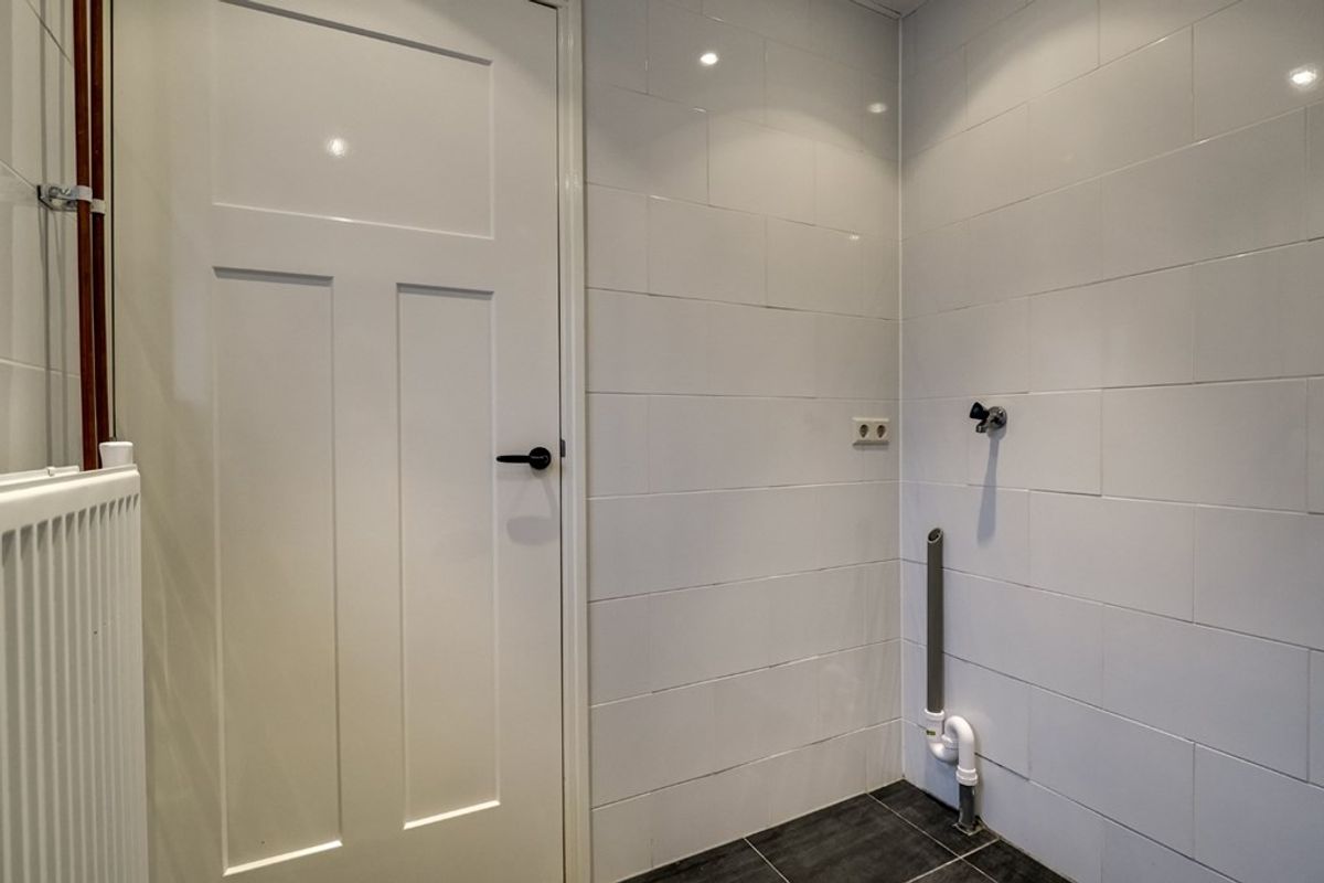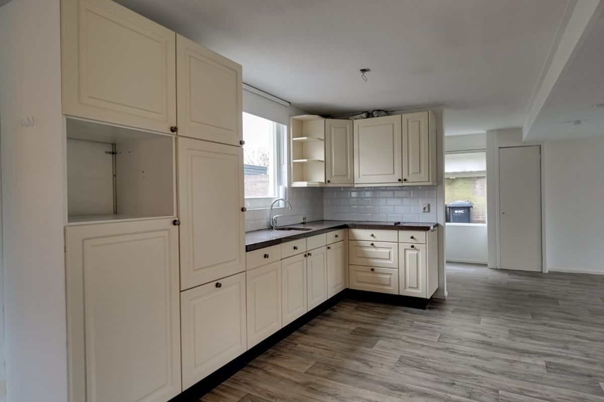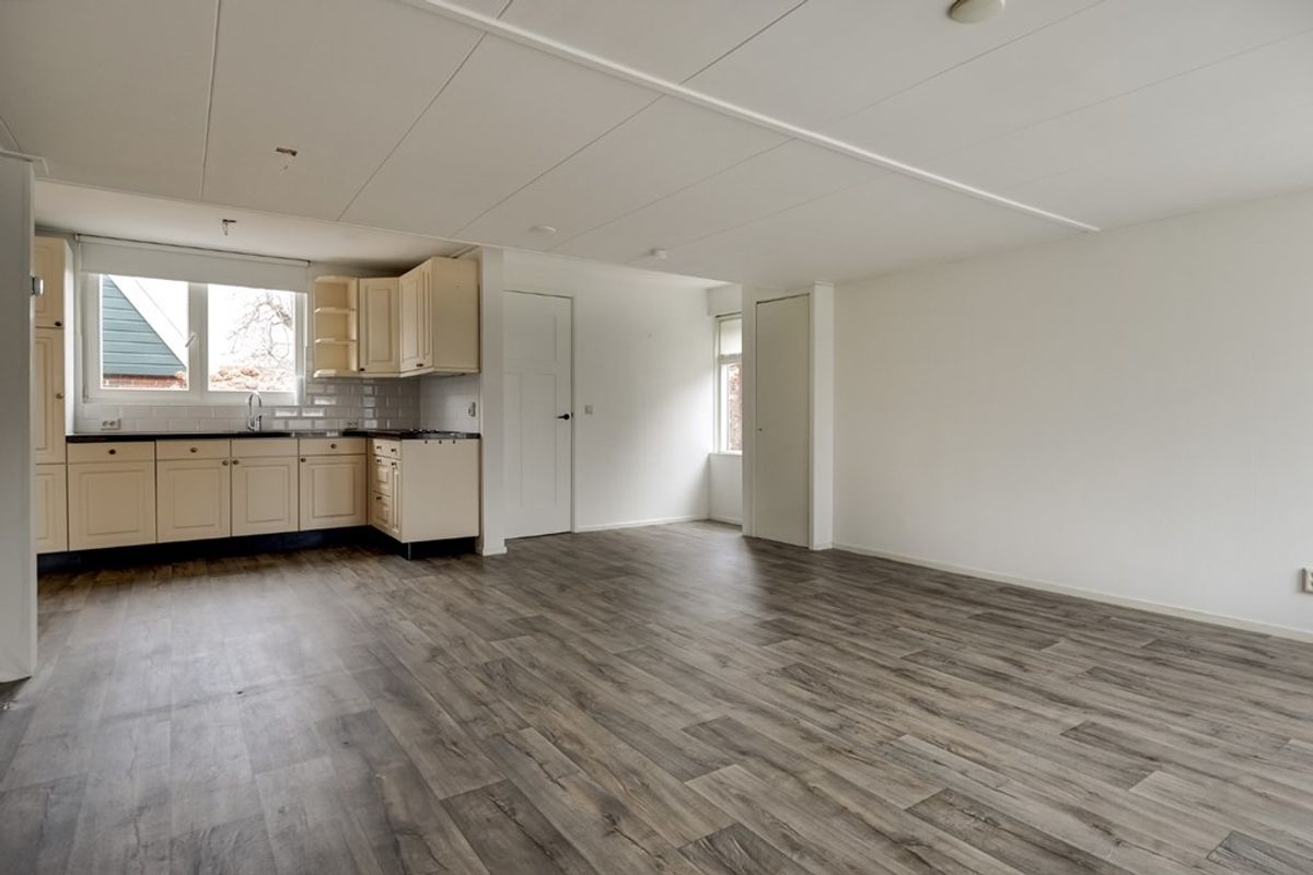 Achter entree/hal met garderobekast, woonkamer met meterkast, hoekkeuken voorzien van inbouwapparatuur, slaapkamer, hal met toielt, badkamer met douche, wastafel en wasmachineaansluiting.