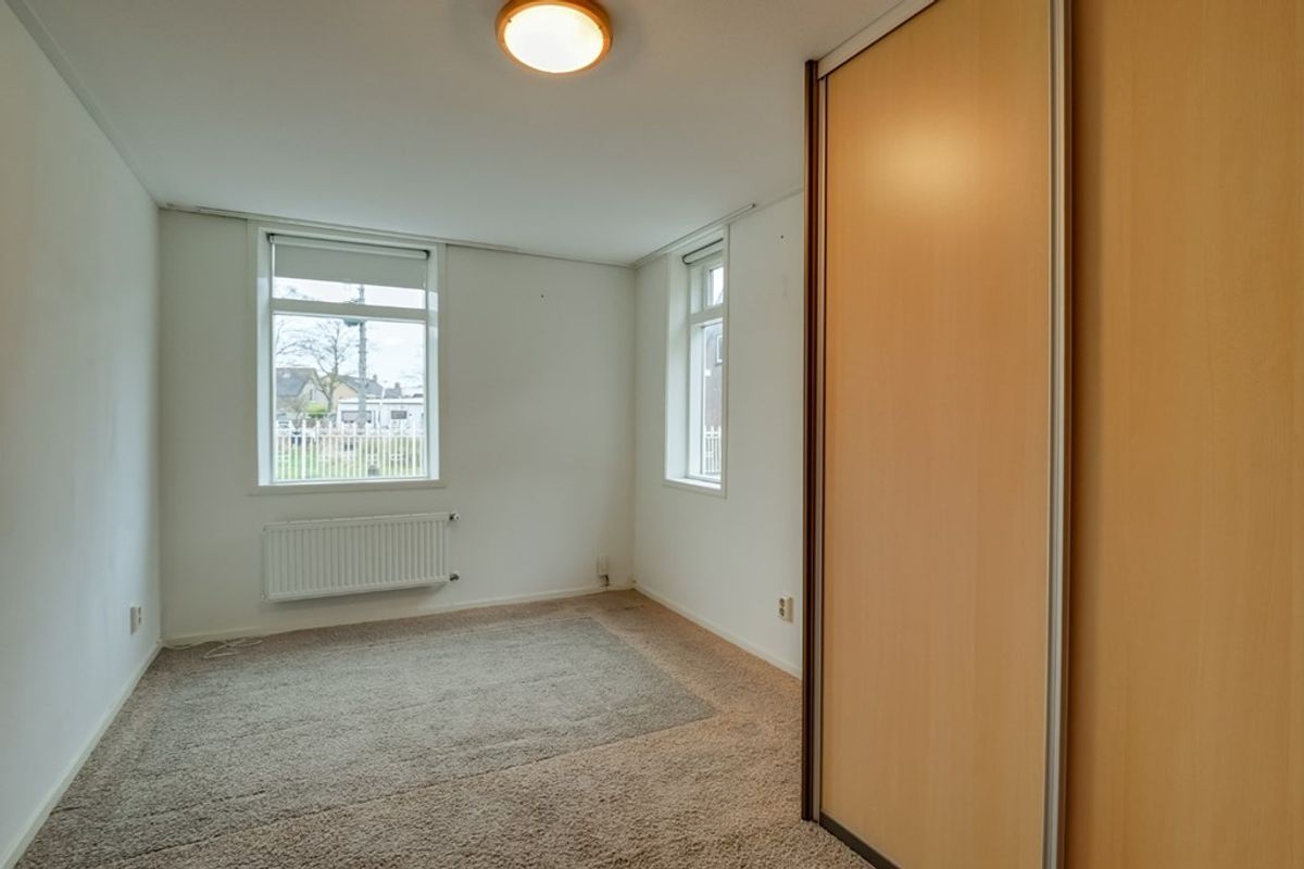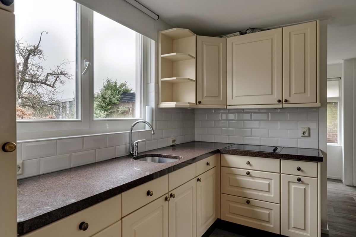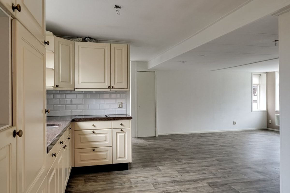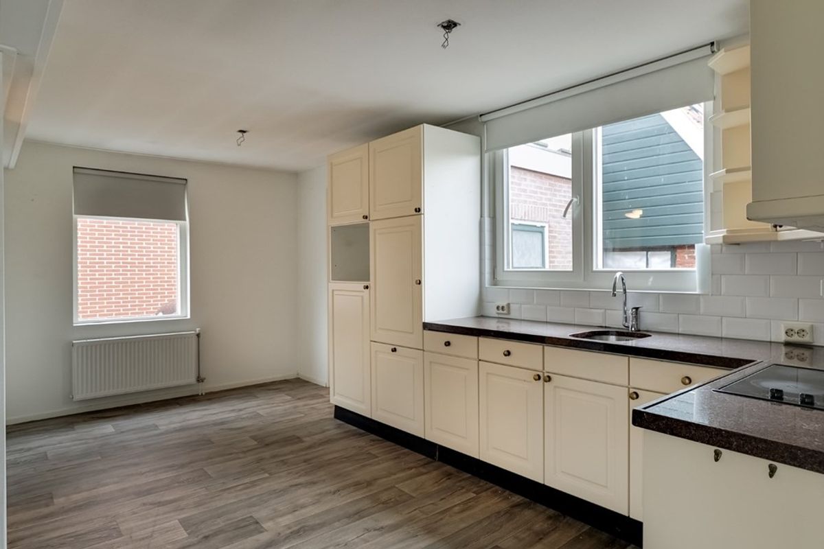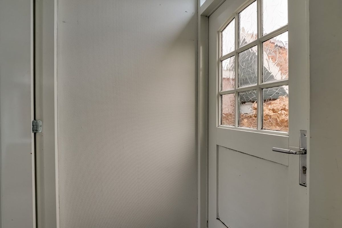 Achter entree/hal met garderobekast, woonkamer met meterkast, hoekkeuken voorzien van inbouwapparatuur, slaapkamer, hal met toielt, badkamer met douche, wastafel en wasmachineaansluiting.