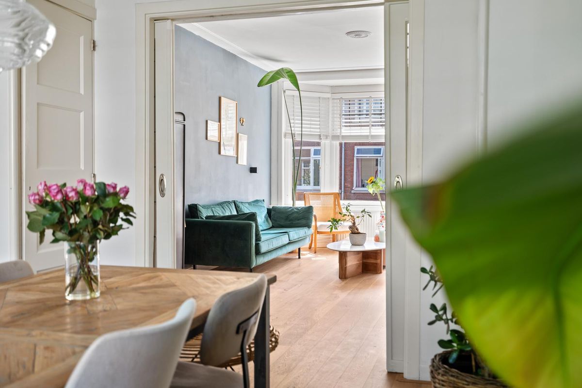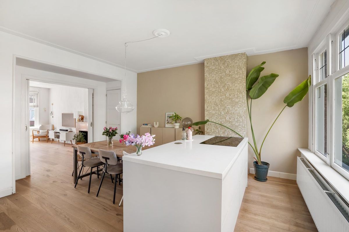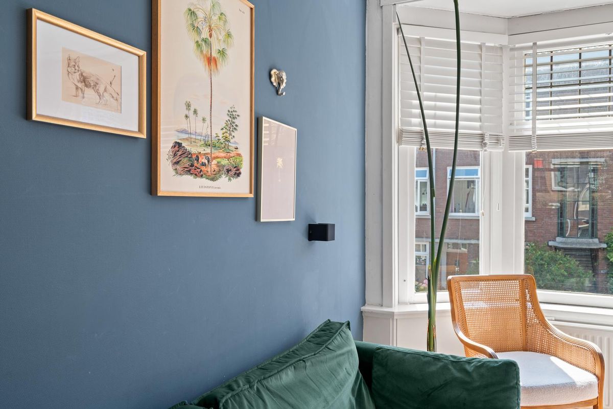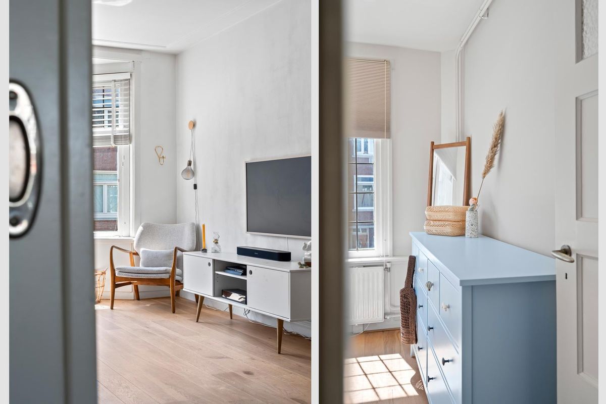 Entree/hal met tochtportaal, vaste kast, separaat toilet (vernieuwd in 2020), meterkast en toegang tot alle vertrekken. De ensuite woonkamer met 4 vaste kasten heeft maar een lengte van maar liefst ca. 11 meter lang. Direct wordt je overspoeld met tal van prachtige originele jaren '30 details zoals o.a. de ornamenten, schouw, het glas-in-lood, paneeldeuren wat het een zeer authentieke sfeer geeft. Door de grote raampartijen komt er veel licht de woning in wat zorgt voor een fijne, lichte sfeer. Dankzij de praktische indeling van de woning zijn het eet- en woongedeelte eenvoudig van elkaar te scheiden door karakteristieke en suite deuren. Het eetgedeelte staat in directe verbinding met de open keuken. Hier komen koken en gezelligheid perfect samen. Het is de ideale plek om in contact te blijven met je gezelschap, terwijl je aan het koken bent. De keuken is voorzien van hoogwaardige, ingebouwde Atag-apparatuur, waaronder een combi-stoomoven met grillfunctie en alle ovenfuncties, een inductiekookplaat met ingebouwde afzuiging en vier kookzones naast elkaar, een vaatwasser, en een koel-/vriescombinatie. Via de keuken heb je toegang tot het balkon, gelegen op het oosten. Hier kan je in de ochtend heerlijk genieten van de zon met een kop koffie! De master bedroom is gelegen aan de achterzijde van de woning. Hier is meer dan voldoende ruimte voor een tweepersoonsbed en een riante kledingkast. Vanuit de master bedroom heb je toegang tot de moderne badkamer. Deze is in 2020 volledig gerenoveerd en voorzien van een inloop(regen)douche met hoogwaardige Hotbath-kranen, een wastafel met meubel en een wasmachine-aansluiting. Aan de voorzijde van de woning is de 2e slaapkamer gelegen. Deze kamer is multifunctioneel in te richtten als bijvoorbeeld een kinder-, werk-, slaapkamer. Zowel de slaapkamer als de tweede kamer zijn voorzien van dubbel glas. De gehele woning beschikt over een sfeervolle houten parketvloer.