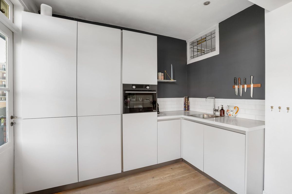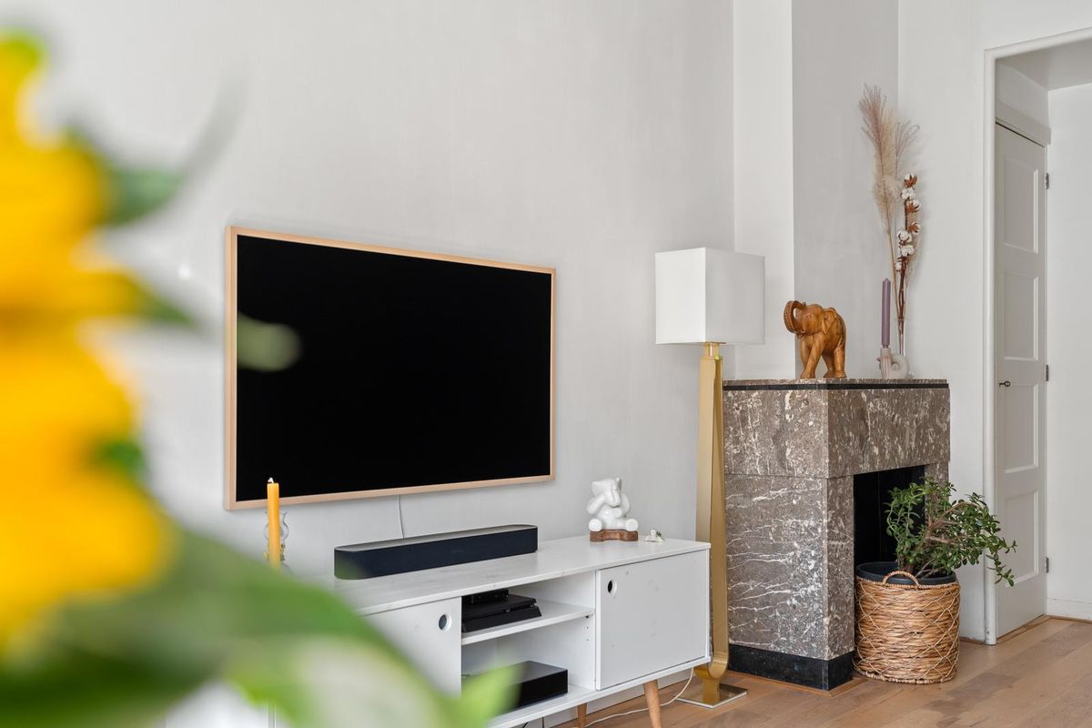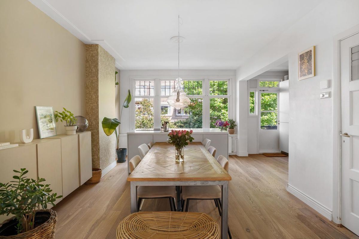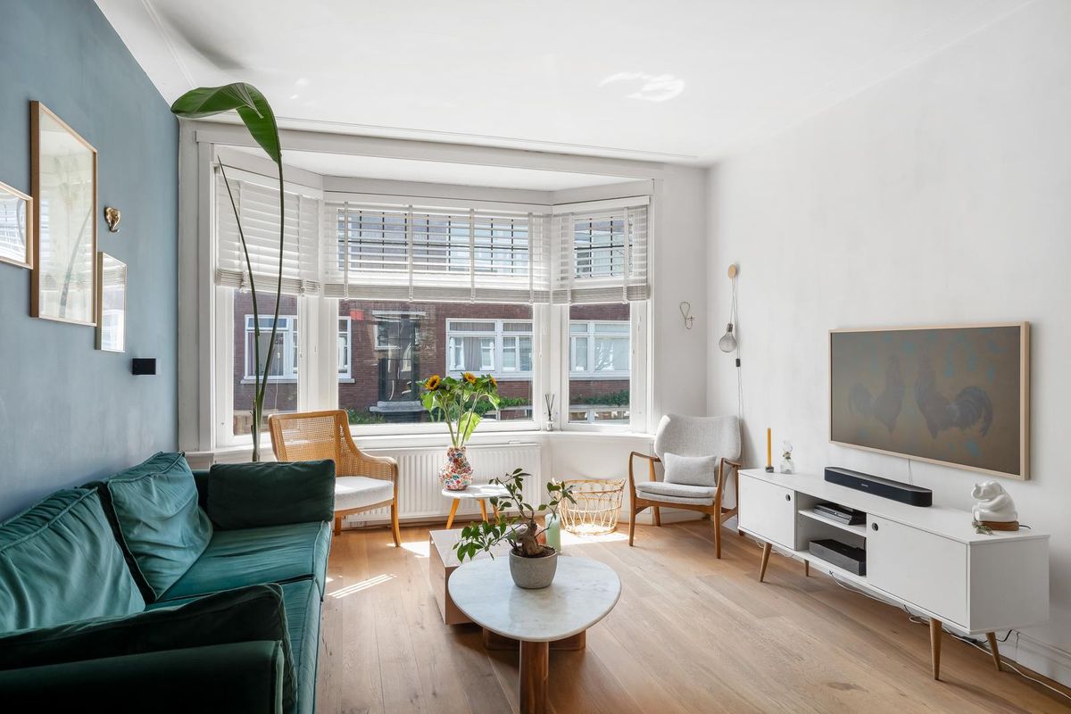 Entree/hal met tochtportaal, vaste kast, separaat toilet (vernieuwd in 2020), meterkast en toegang tot alle vertrekken. De ensuite woonkamer met 4 vaste kasten heeft maar een lengte van maar liefst ca. 11 meter lang. Direct wordt je overspoeld met tal van prachtige originele jaren '30 details zoals o.a. de ornamenten, schouw, het glas-in-lood, paneeldeuren wat het een zeer authentieke sfeer geeft. Door de grote raampartijen komt er veel licht de woning in wat zorgt voor een fijne, lichte sfeer. Dankzij de praktische indeling van de woning zijn het eet- en woongedeelte eenvoudig van elkaar te scheiden door karakteristieke en suite deuren. Het eetgedeelte staat in directe verbinding met de open keuken. Hier komen koken en gezelligheid perfect samen. Het is de ideale plek om in contact te blijven met je gezelschap, terwijl je aan het koken bent. De keuken is voorzien van hoogwaardige, ingebouwde Atag-apparatuur, waaronder een combi-stoomoven met grillfunctie en alle ovenfuncties, een inductiekookplaat met ingebouwde afzuiging en vier kookzones naast elkaar, een vaatwasser, en een koel-/vriescombinatie. Via de keuken heb je toegang tot het balkon, gelegen op het oosten. Hier kan je in de ochtend heerlijk genieten van de zon met een kop koffie! De master bedroom is gelegen aan de achterzijde van de woning. Hier is meer dan voldoende ruimte voor een tweepersoonsbed en een riante kledingkast. Vanuit de master bedroom heb je toegang tot de moderne badkamer. Deze is in 2020 volledig gerenoveerd en voorzien van een inloop(regen)douche met hoogwaardige Hotbath-kranen, een wastafel met meubel en een wasmachine-aansluiting. Aan de voorzijde van de woning is de 2e slaapkamer gelegen. Deze kamer is multifunctioneel in te richtten als bijvoorbeeld een kinder-, werk-, slaapkamer. Zowel de slaapkamer als de tweede kamer zijn voorzien van dubbel glas. De gehele woning beschikt over een sfeervolle houten parketvloer.