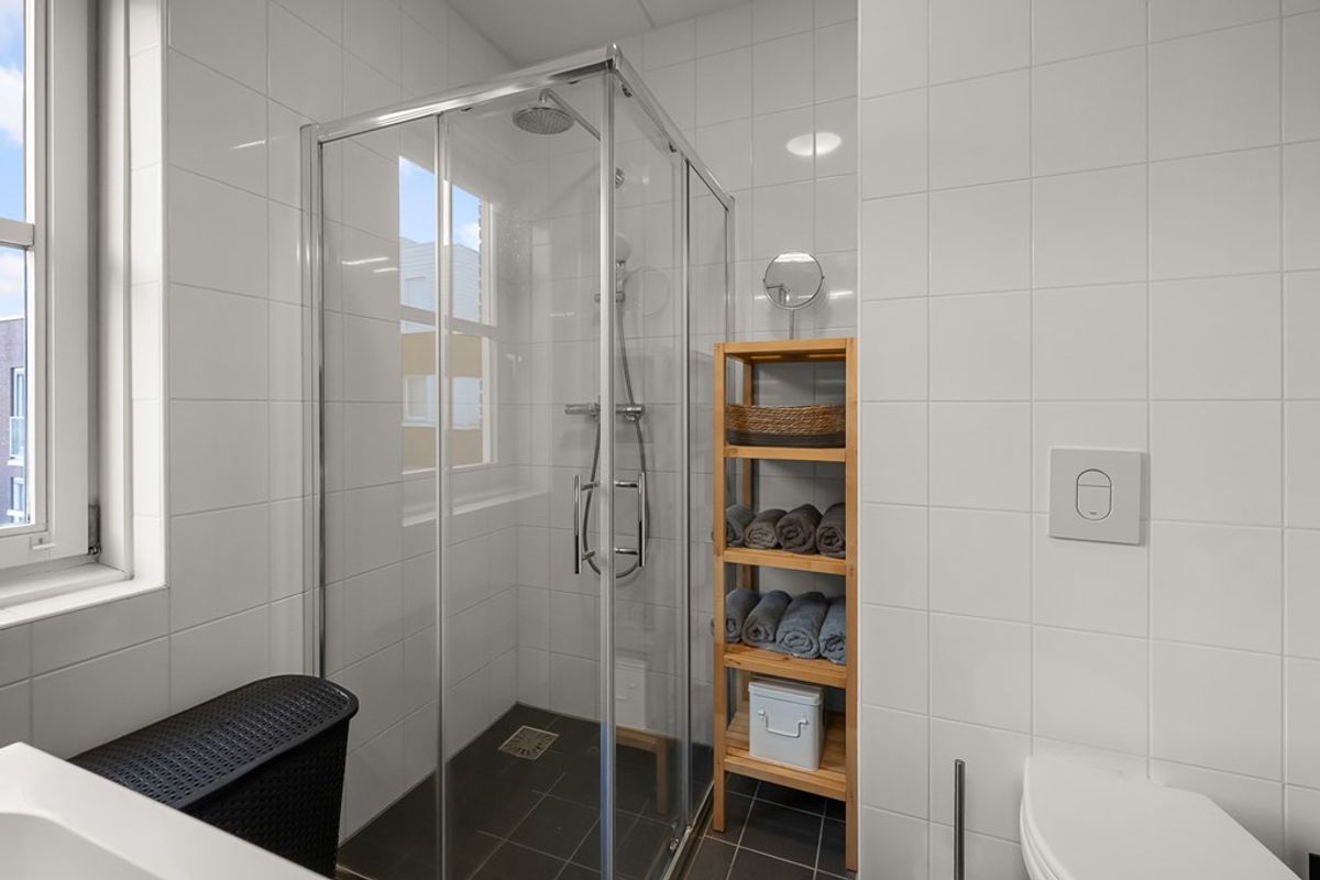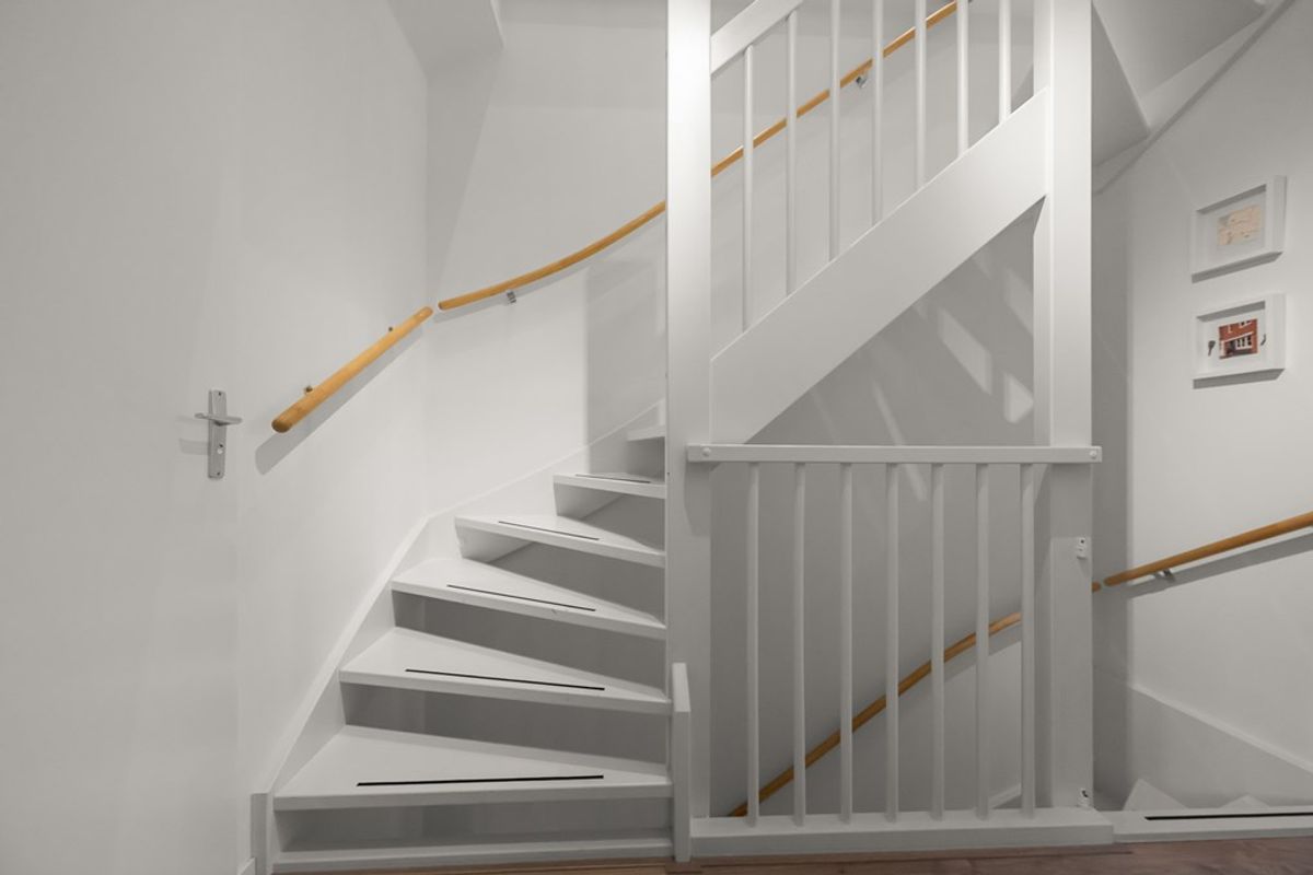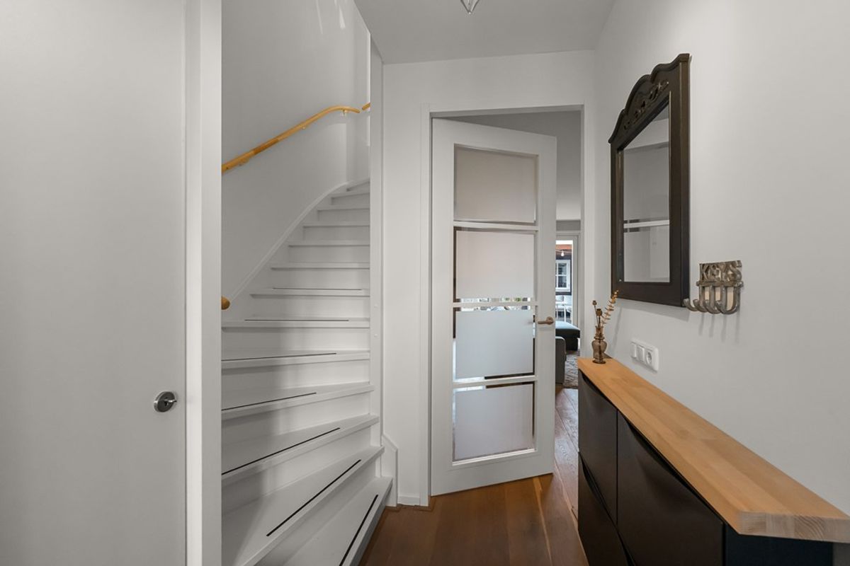 De ruime tweede verdieping biedt verrassend veel extra ruimte. Hier vind je een overloop met bergruimte waar de cv-installatie en mechanische ventilatie zijn geplaatst, evenals een separate wasruimte. Daarnaast is hier de vierde, royale slaapkamer, met veel bergruimte – perfect als hoofdslaapkamer, werkruimte of logeerkamer.