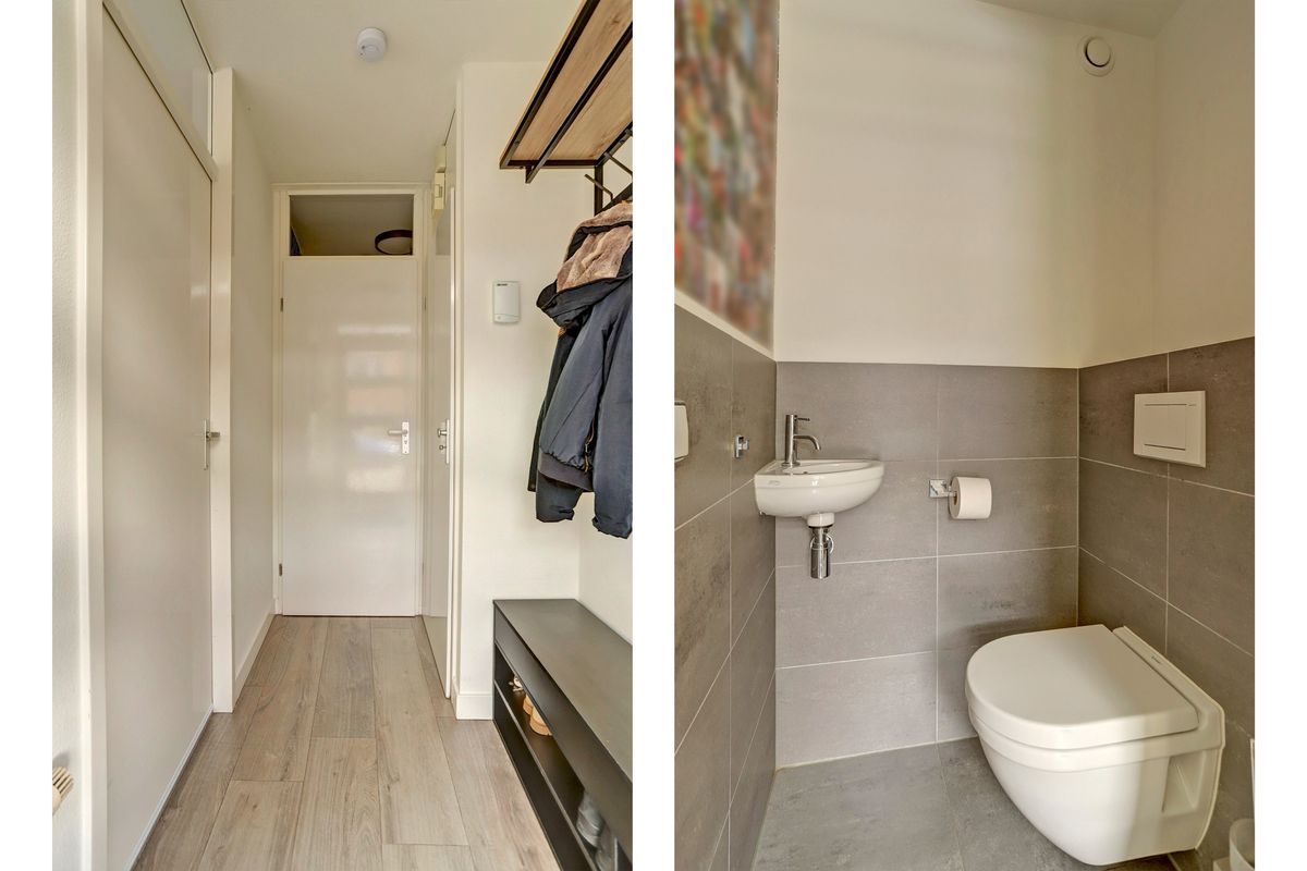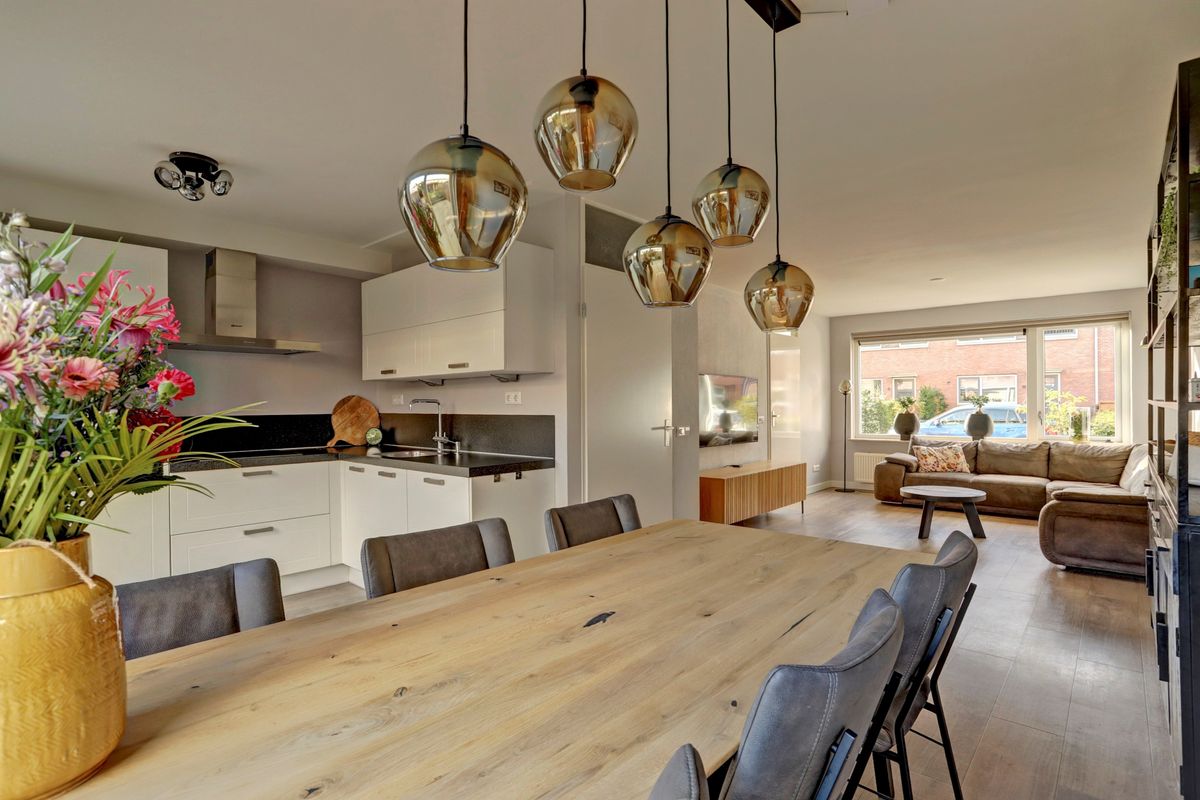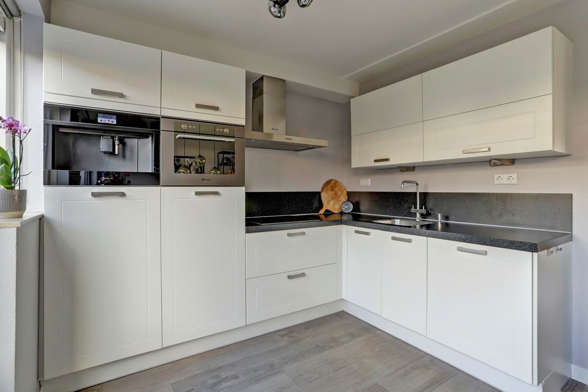 Je komt binnen in de hal met de meterkast en toilet. De woonkamer ligt aan de voorzijde en is licht en sfeervol en voorzien van vloerverwarming – heerlijk comfortabel in de koudere maanden. Aan de achterzijde bevindt zich de stijlvolle woonkeuken met volop ruimte voor een grote eettafel. De keuken is compleet uitgerust met diverse inbouwapparatuur, waaronder een inductiekookplaat, afzuigkap, koelkast met vriesvakje, vaatwasser, combi-oven/magnetron en een ingebouwd koffiezetapparaat.