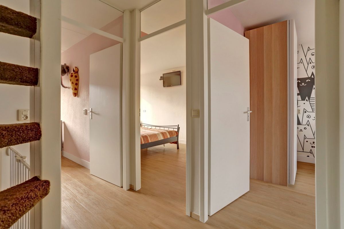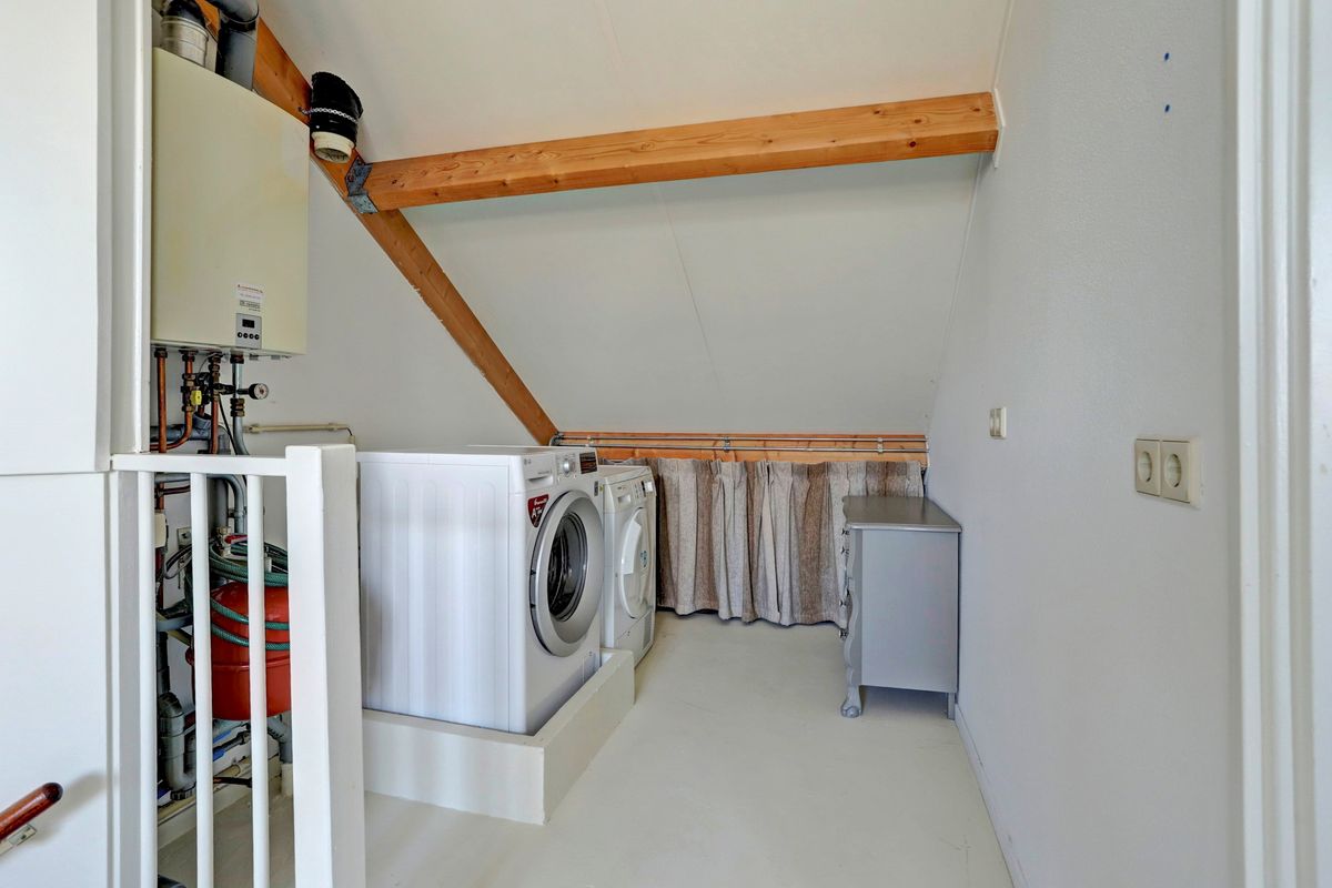 Via een vaste trap bereik je de tweede verdieping met een grote overloop, aansluitingen voor wasmachine en droger, en een vierde (slaap)kamer met veel lichtinval en ruimte dankzij de dakkapel.