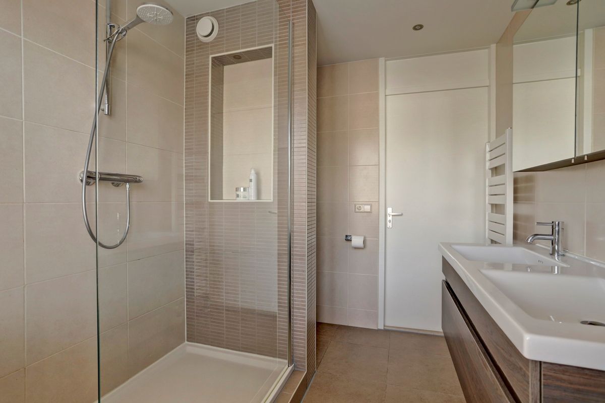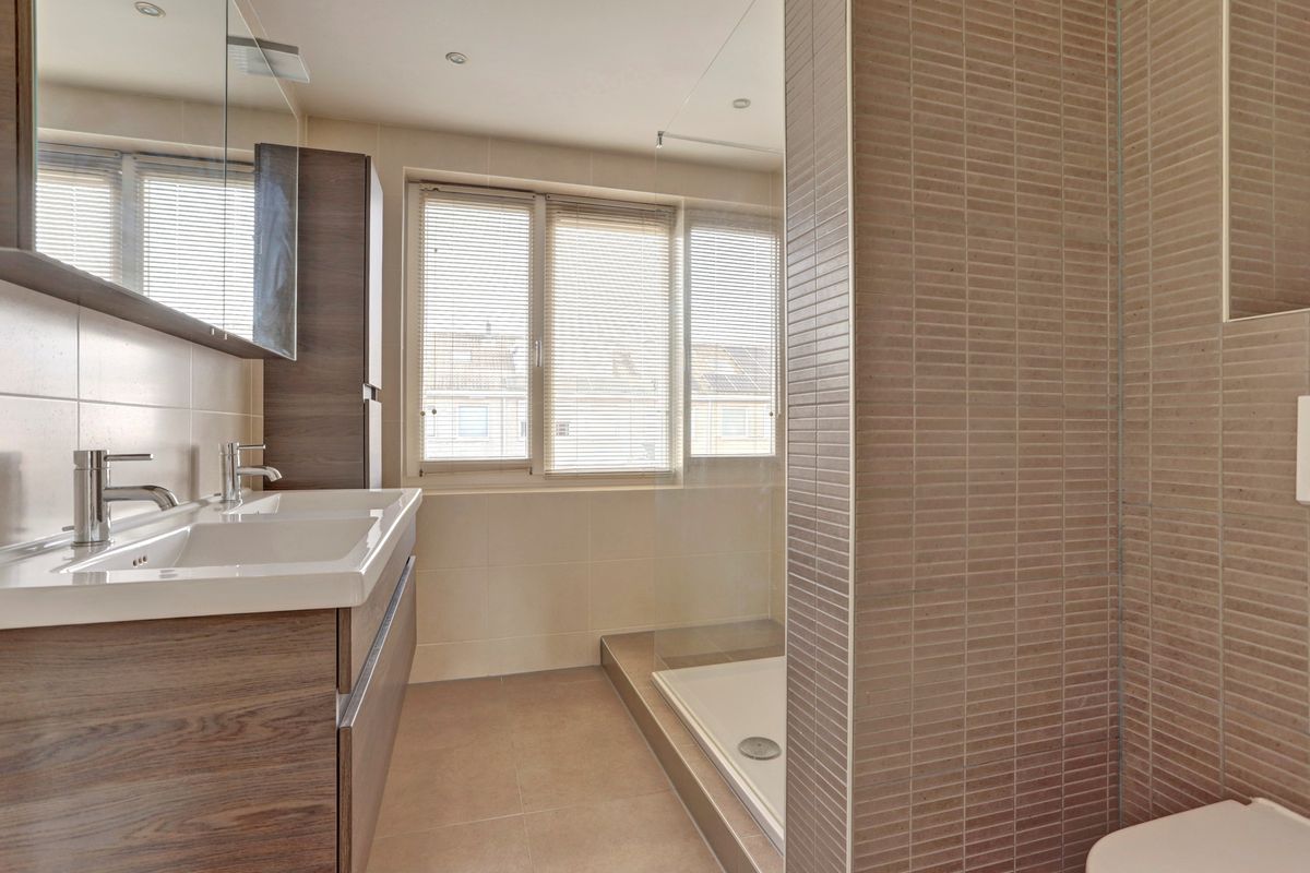 Op deze verdieping zijn drie nette slaapkamers, allemaal voorzien van rolgordijnen. De moderne badkamer is ingericht met een ruime inloopdouche, een dubbel wastafelmeubel en een hangend toilet.