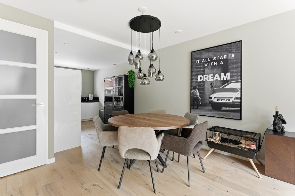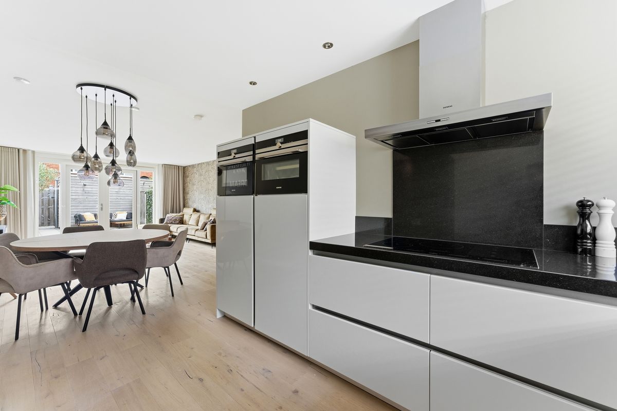 Keuken: De open keuken ligt aan de voorzijde en heeft een L-vormige opstelling. Deze is netjes onderhouden en voorzien van diverse inbouwapparatuur, waaronder een stoomoven/oven, combi-oven/magnetron, inductiekookplaat, afzuigkap, vriezer, koelkast, Quooker en een nieuwe vaatwasser. Een praktische en gezellige keuken waar je elke dag met plezier staat te koken.