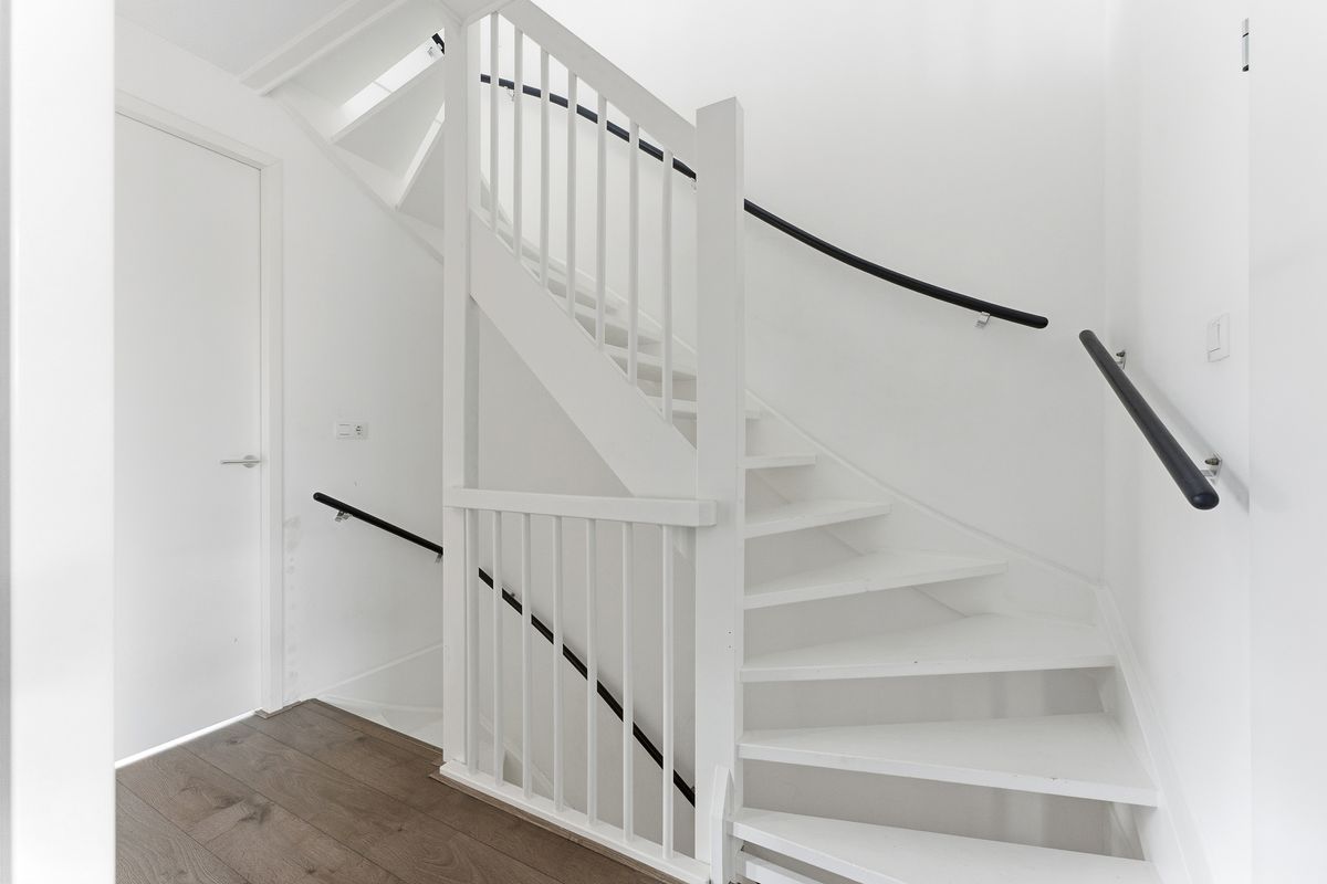 Entree: Ruime hal met grote droogloopmat en genoeg plek voor een garderobe. Vanuit hier heb je toegang tot de meterkast, de toiletruimte, de trapopgang naar de eerste verdieping en de woonkamer. De hal is keurig afgewerkt met een parketvloer, gestuukte wanden, wanden met glasvliesbehang en een gestuukt plafond.