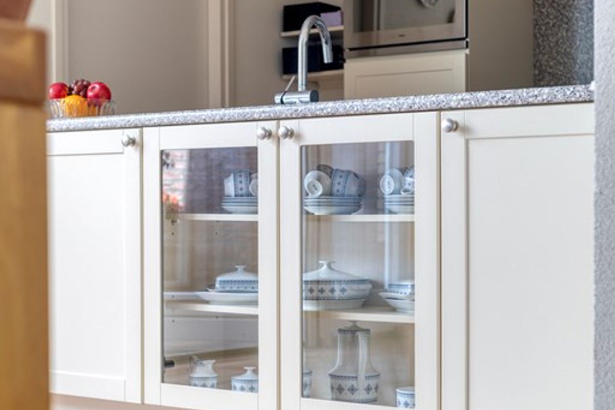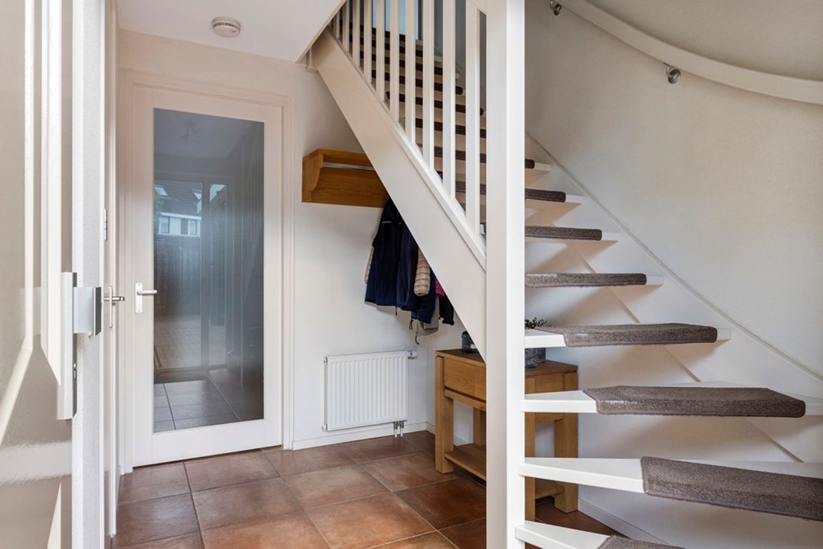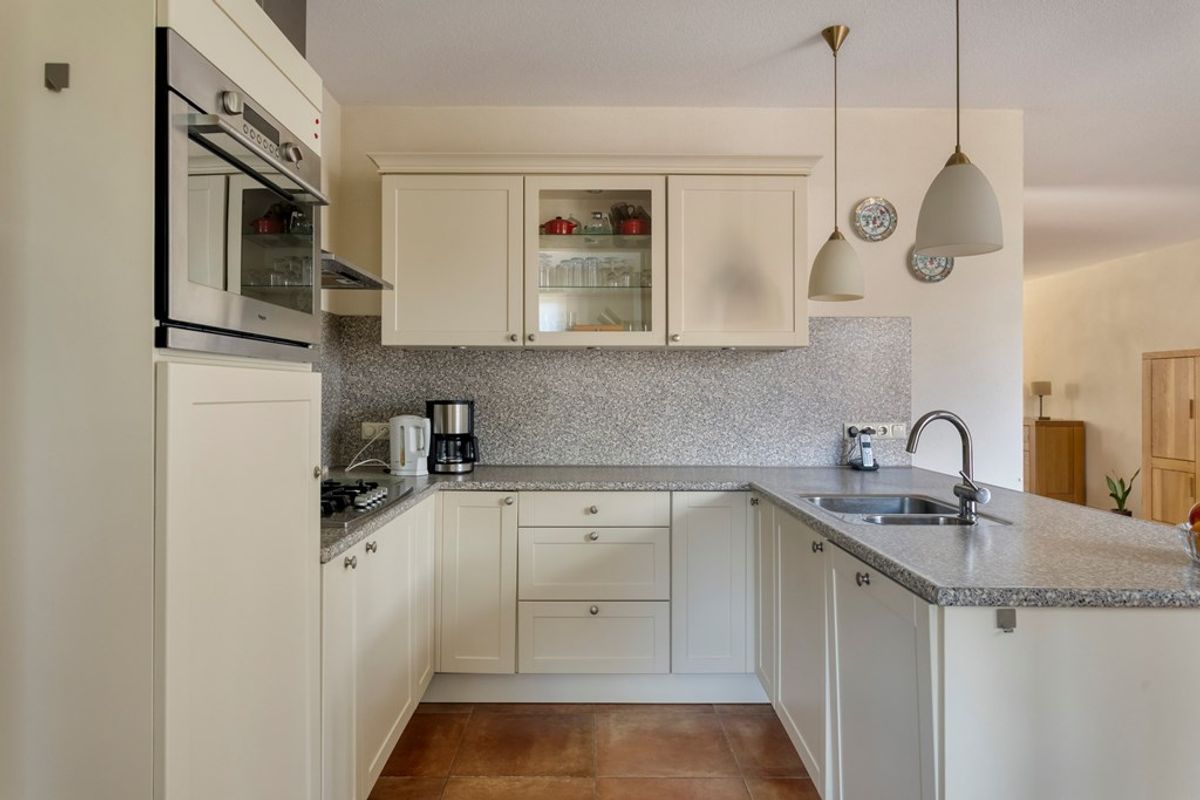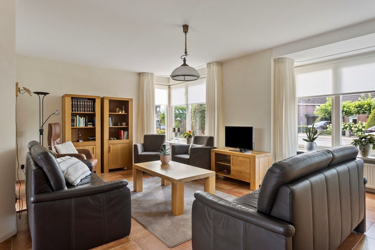 Via de royale oprit bereikt u de entree van de woning. In de ruime hal treft u de meterkast, trapopgang en een modern toilet. De woonkamer strekt zich uit over de volledige breedte van de woning en wordt overspoeld door licht dankzij de grote raampartijen aan de voorzijde en de openslaande tuindeuren aan de achterzijde. Een heerlijke ruimte waar een sfeervolle zithoek eenvoudig wordt gecreëerd. De woonkamer sluit naadloos aan op de open leef keuken. Deze ruime keuken is ingericht met een licht U-meubel en voorzien van diverse apparatuur, zoals een gaskookplaat, afzuigkap, combi-oven, koelkast en een vaatwasser. Aangrenzend vindt u de bijkeuken, welke is voorzien van een spoelmeubel en toegang verleend aan zowel de achtertuin als de garage.