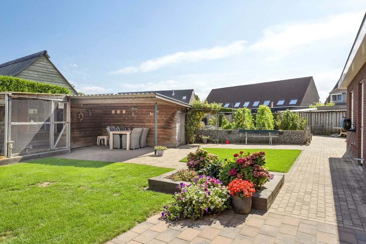 De tuin is zonder twijfel een van de meest bijzondere aspecten van deze woning. Aan de voorzijde springt de verzorgde voortuin direct in het oog, met een nette aanleg en een oprit die doorloopt naar de dubbele garage. Hier is plek genoeg om meerdere auto’s op eigen terrein te parkeren. De achtertuin is een waar paradijs voor wie van het buitenleven houdt. Direct achter de woning ligt een ruim terras, hier ontbijt je in de zon en geniet u van lange zomeravonden. Verder vindt u een groot gazon, afgewisseld met kleurrijke beplanting. Aangrenzend is een royale moestuin waar u uw eigen groenten, kruiden en fruit kunt verbouwen. Achter in de tuin staat een ruime overkapping die u het hele jaar door kunt gebruiken, of het nu gaat om een barbecue met vrienden of een ontspannen avond met het gezin. Ook de volière is een bijzonder element en biedt volop mogelijkheden voor het houden van vogels in de tuin. Dankzij de praktische achterom bereikt u eenvoudig de oprit en garage, wat het dagelijks gebruik nog comfortabeler maakt. Deze buitenruimte combineert functionaliteit met charme en biedt voor ieder seizoen iets bijzonders.