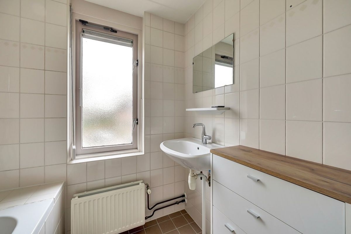 Overloop, 3 slaapkamers (voorzien van laminaatvloeren), badkamer (voorzien van een ligbad en een vaste wastafel).