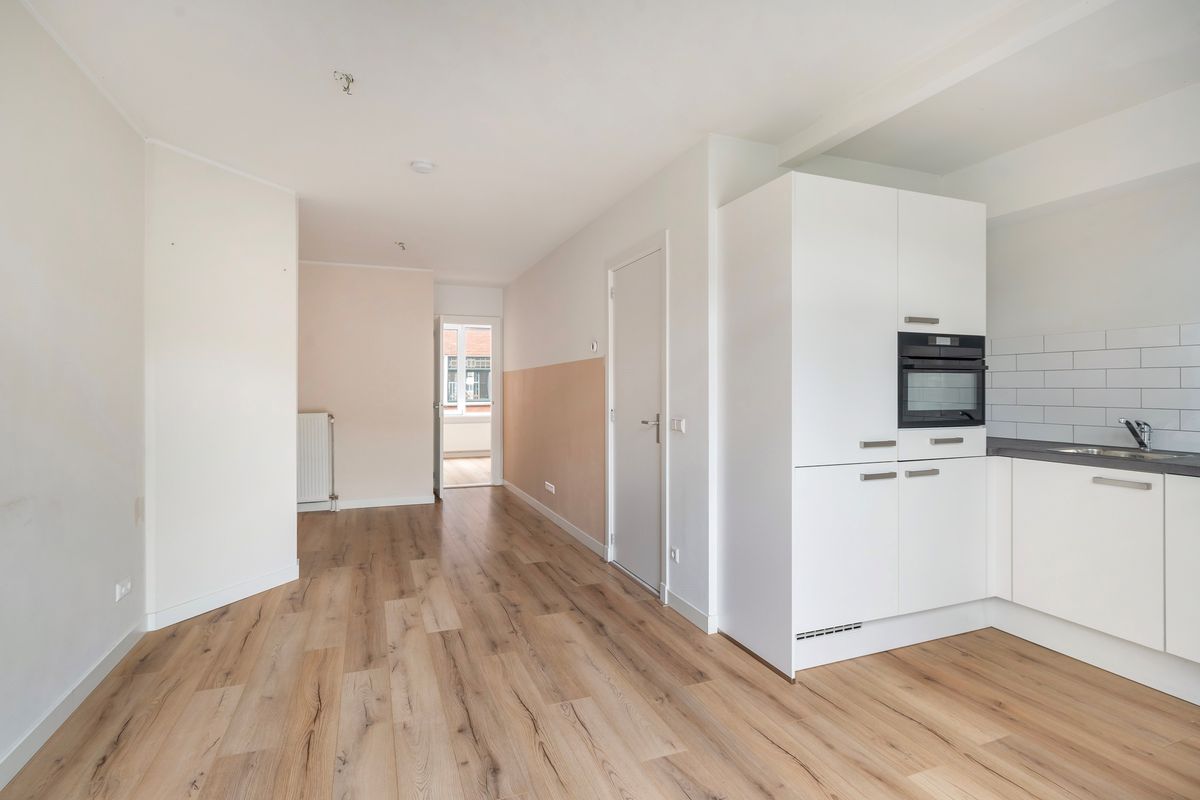De woonkamer straalt ruimte uit dankzij het overvloedige daglicht. De open indeling geeft een moderne uitstraling en maakt het appartement praktisch in gebruik. De keuken sluit hier naadloos op aan en biedt alle gemakken voor dagelijks koken en gezellig tafelen.