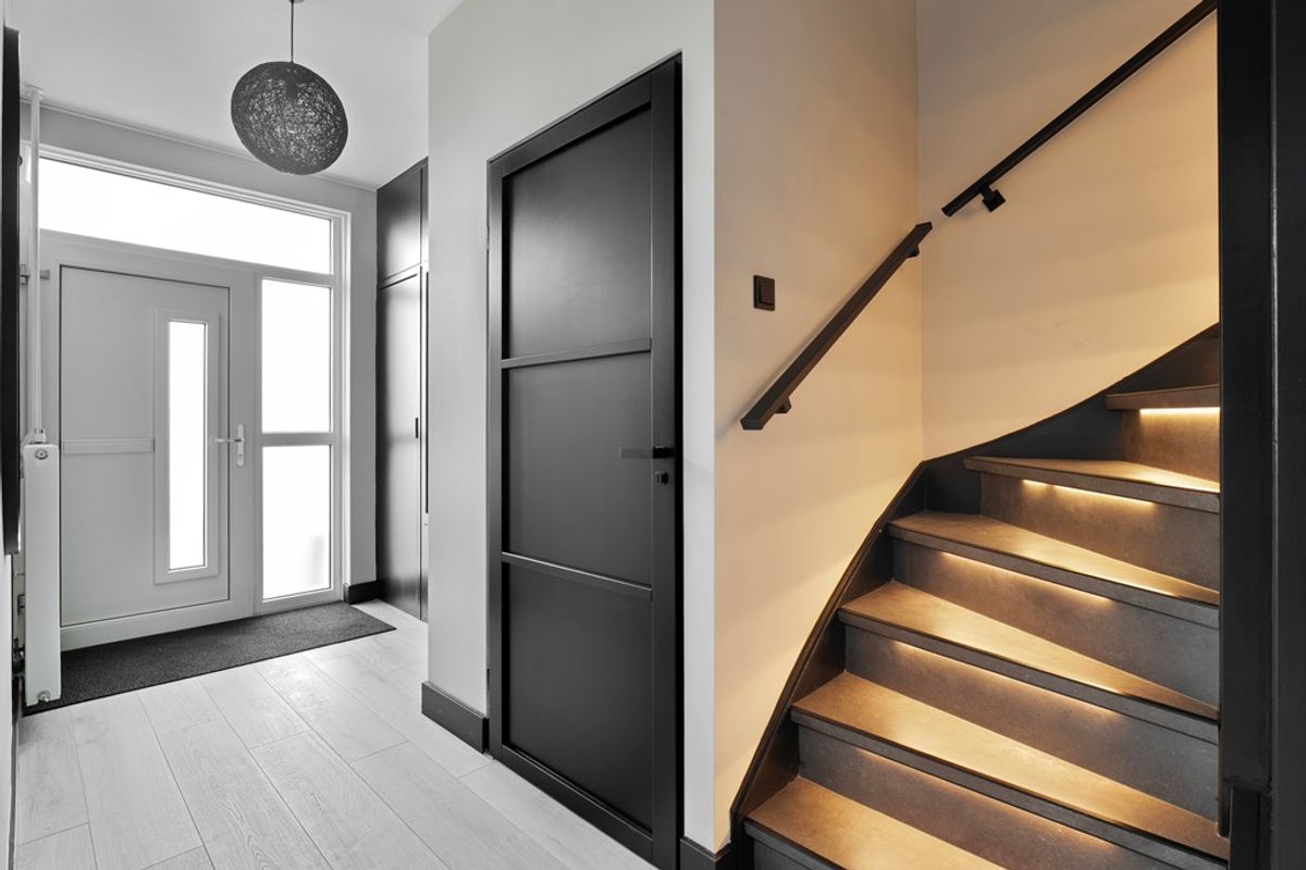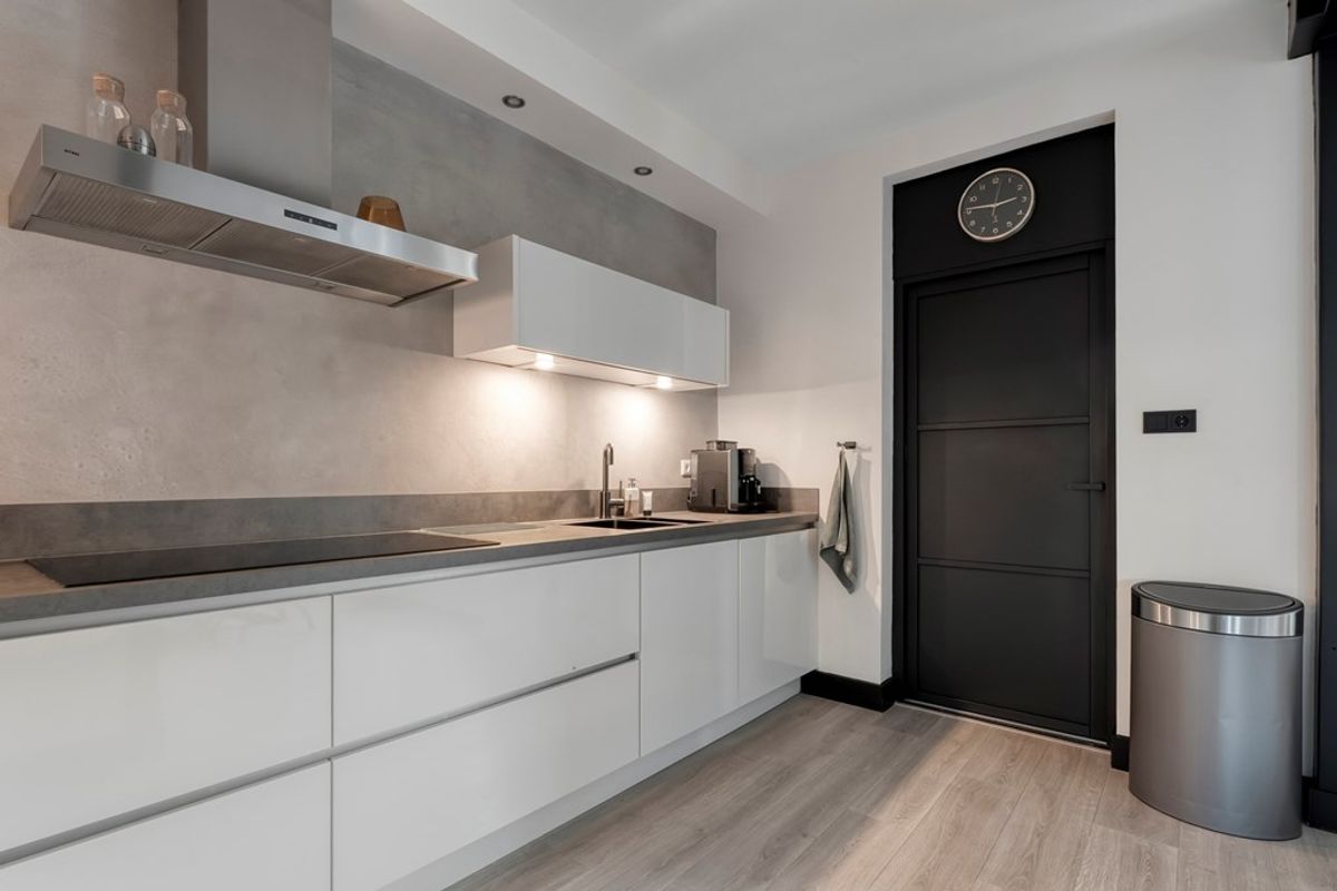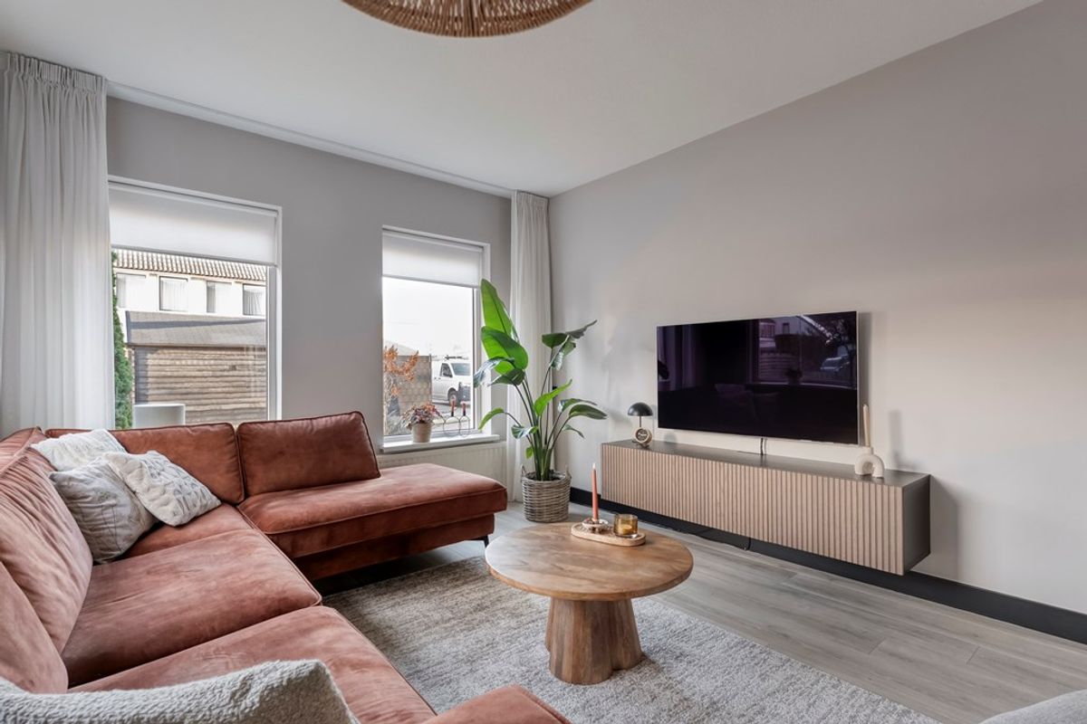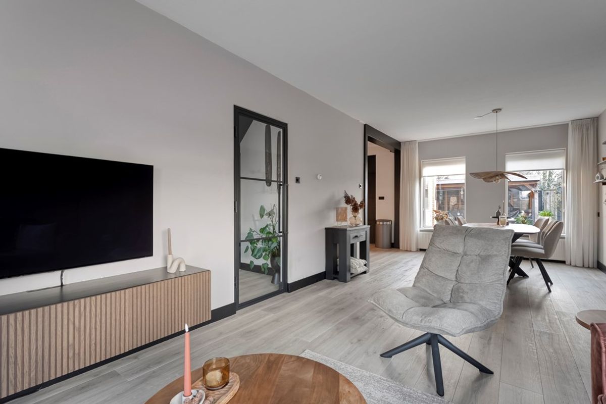 Hal/entree met meterkast, trapkast en het toilet; Ruime woonkamer; Moderne halfopen keuken (2020) voorzien van een inductie kookplaat, afzuigkap, vaatwasser, combi-magnetron en een koel-/vriescombinatie; Praktische bijkeuken.