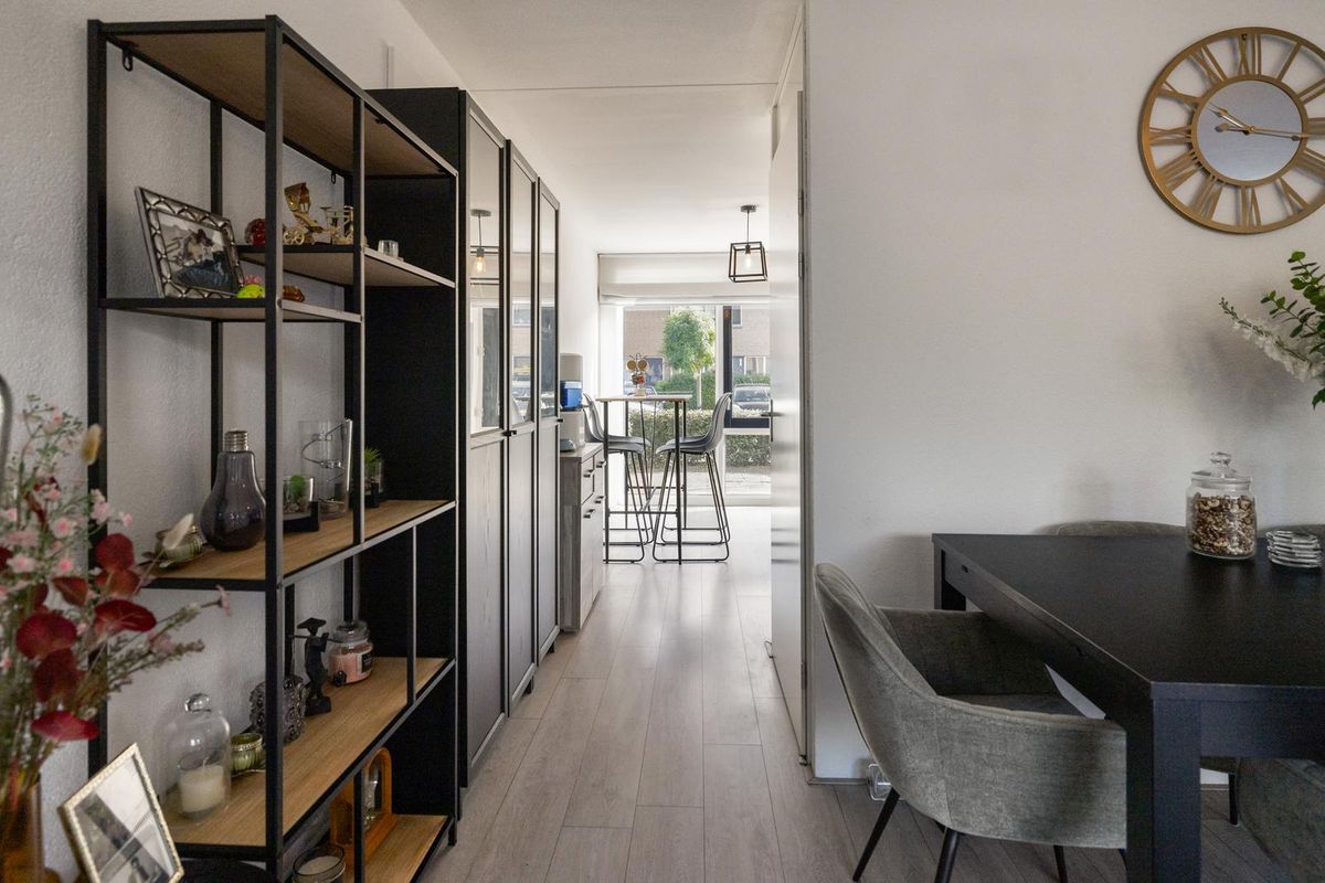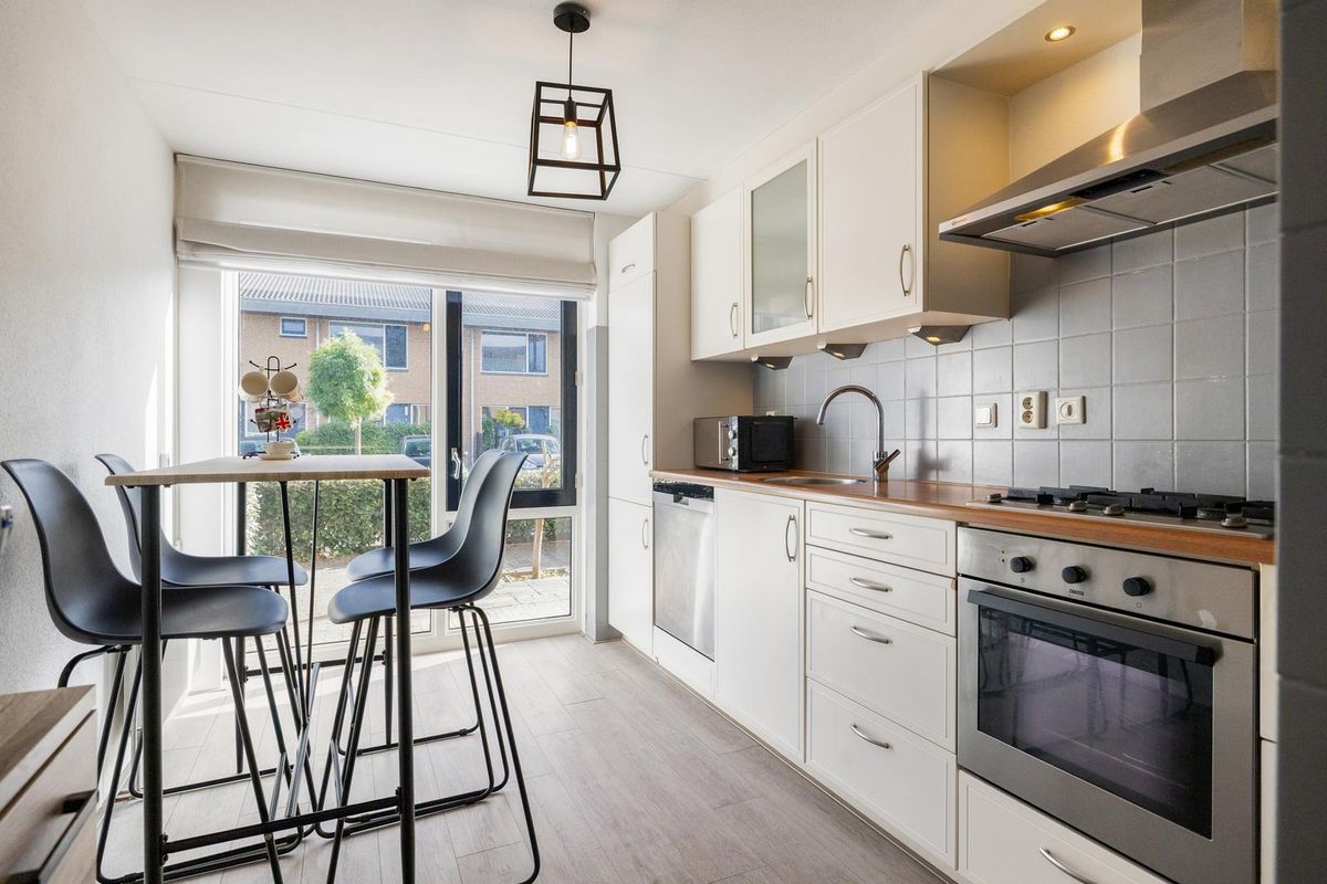 Entree, hal, meterkast, trapopgang, toiletruimte met vrijdragend toilet en fontein. Tuingerichte woonkamer met deur naar de achtertuin, open keuken met diverse inbouwapparatuur: een vaatwasser, koel-vriescombinatie, 4-pits gaskookplaat, afzuigkap en oven. Daarnaast is er een praktische trapkast aanwezig.