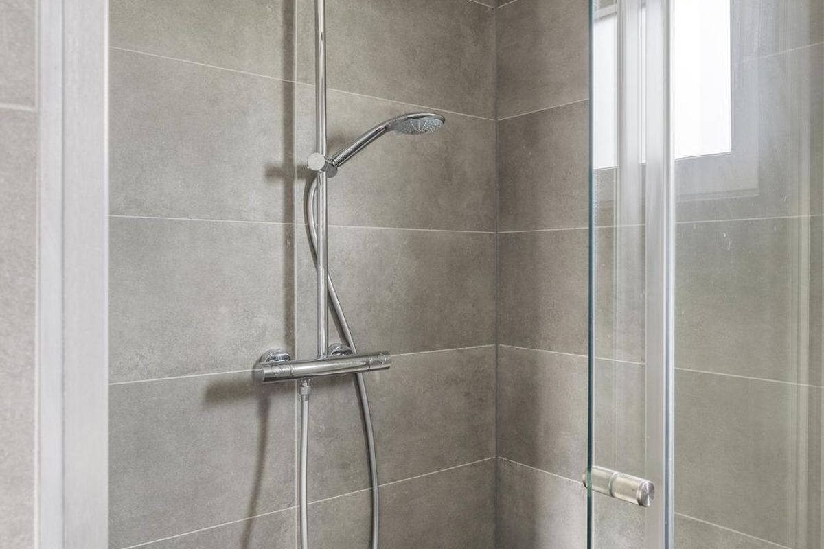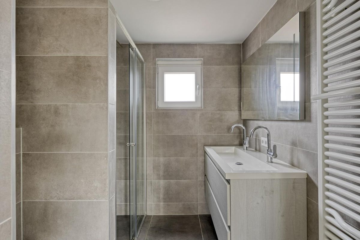 * Volledig betegelde badkamer van ca. 2.14 x 2.11 voorzien van douche, dubbele wastafel met meubel, 2e zwevend toilet en designradiator.