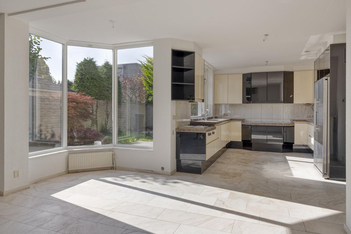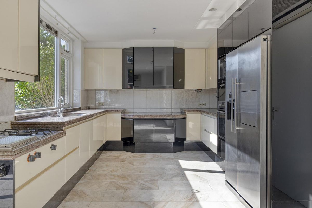 * Halfopen keuken voorzien van een marmeren vloer met vloerverwarming, granieten aanrechtblad, elektrische kookplaat, afzuigkap, 1-pits gasfornuis met grill plaat en afzuigkap, oven, close-in boiler, Amerikaanse koel-/vriescombinatie met ijsblokjes functie, vaatwasmachine en airconditioning.