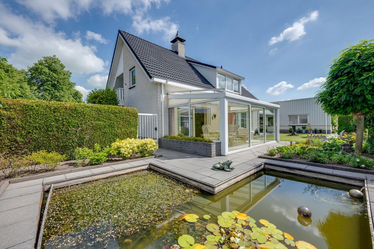 De woning staat op een ruim perceel met een fraai aangelegde voor- en achtertuin. Aan de voorzijde een keurig gazon en borders, aan de achterzijde een fijne tuin met vijver, terras en volwassen beplanting. Dankzij de ligging is er altijd wel een plekje in de zon of schaduw te vinden.