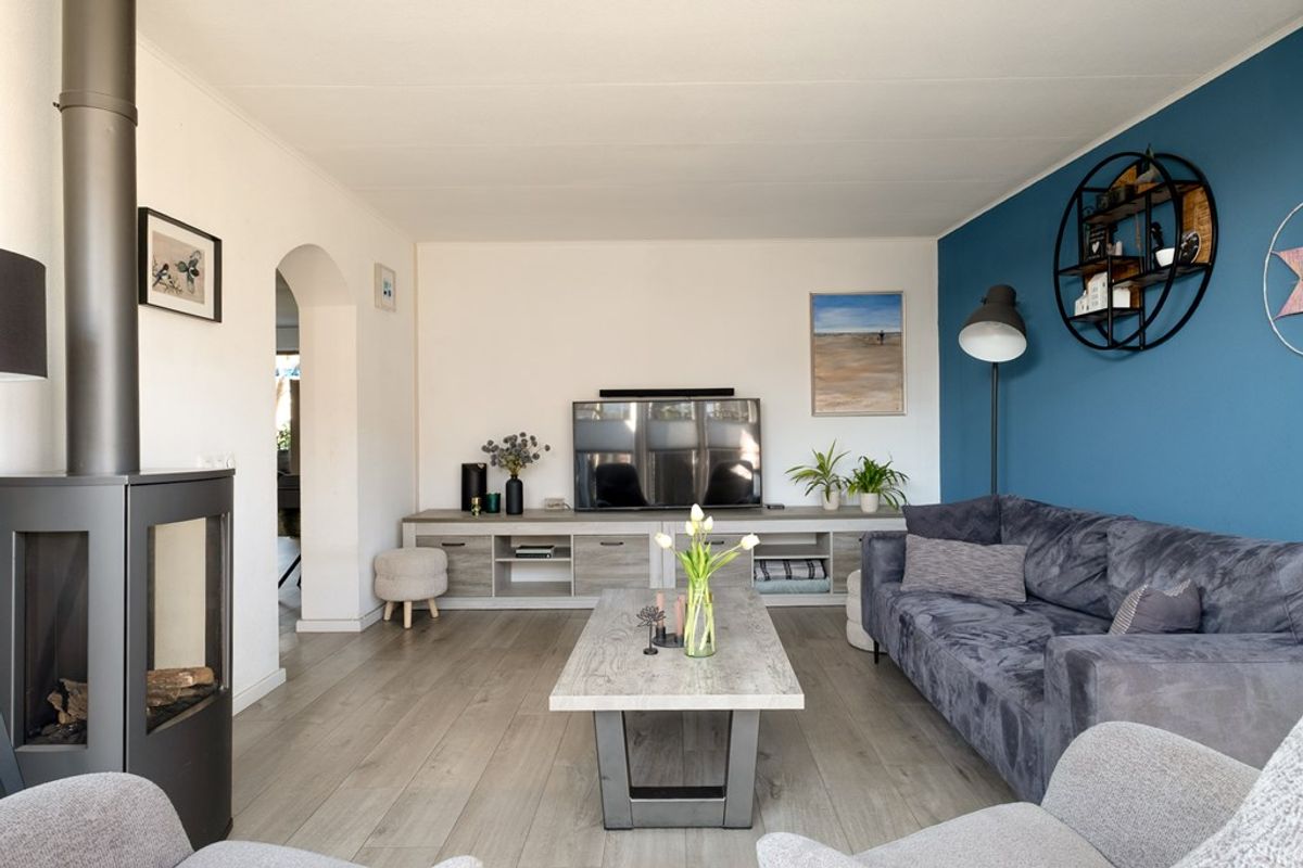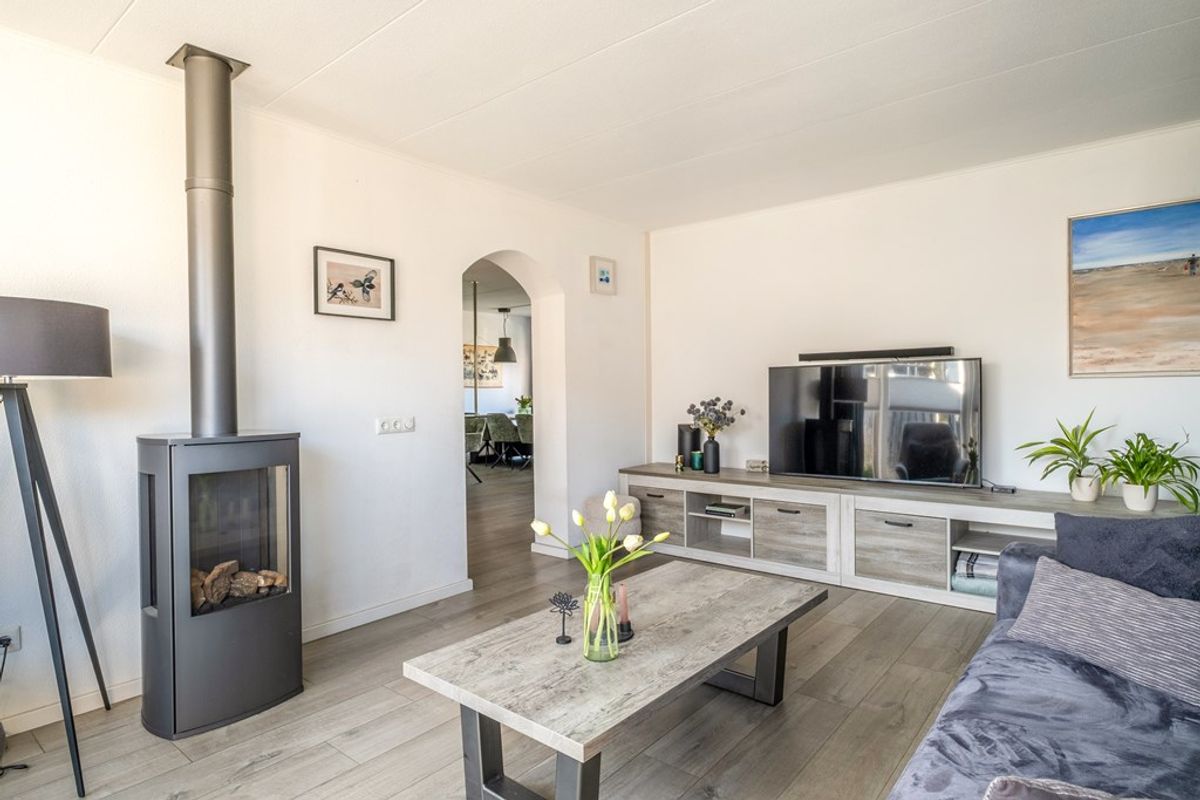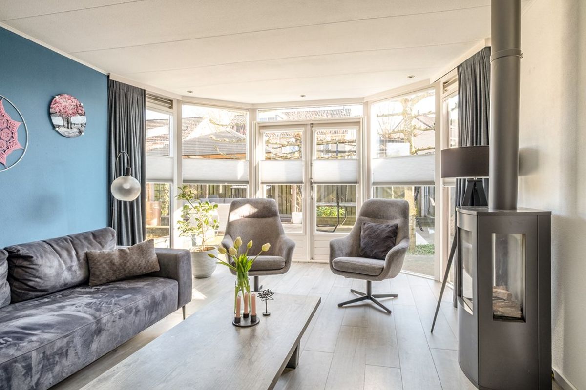 - Uitgebouwde woonkamer met gashaard en lichte erker aan de achterzijde van de woning