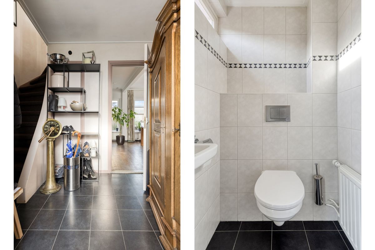 Entree, hal, toilet met handwasbakje, meterkast en trapopgang. Ruime woonkamer met een royale lichtinval. De moderne open keuken, vernieuwd in 2024, mag zeker gezien worden. Er is meer dan voldoende ruimte voor het plaatsen van een grote eettafel, zo ontstaat een gezellige woonkeuken. Vanuit de keuken is de praktische bijkeuken bereikbaar en vanuit de bijkeuken loop je zo de binnendoor bereikbare L-vormige garage in.