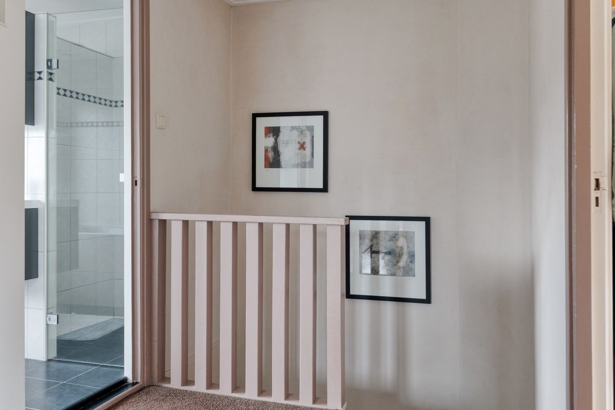 Overloop, ruime badkamer met ligbad (met jacuzzi functie), douche, toilet en wastafel in meubel. Op deze verdieping zijn 3 slaapkamers te vinden.