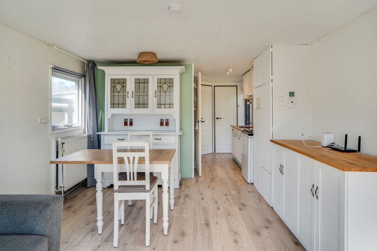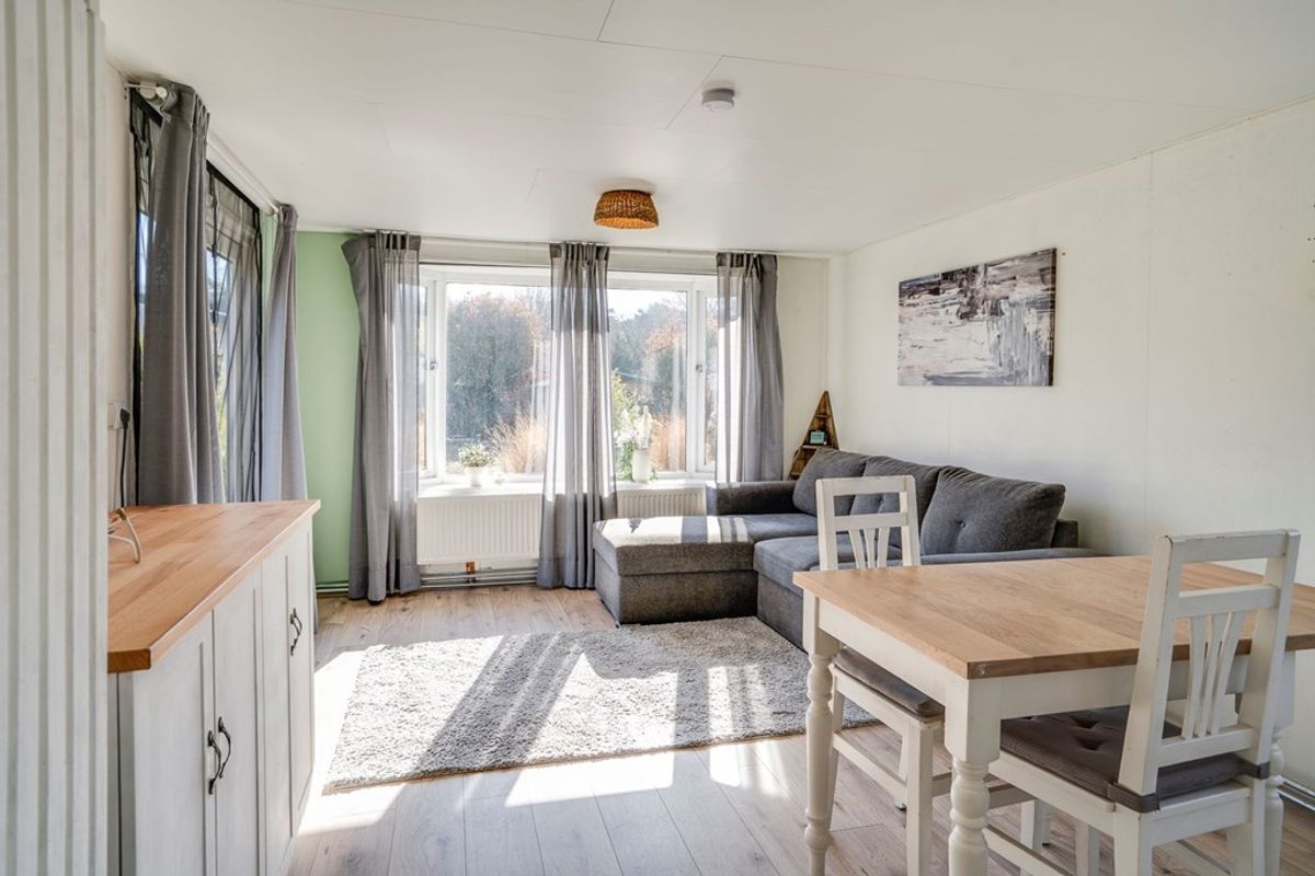 De sfeervolle woonkamer (ca. 22 m²) staat in directe verbinding met de fraai aangelegde tuin dankzij dubbele terrasdeuren. Grote raampartijen zorgen voor een prettige lichtinval en een ruimtelijk gevoel. De halfopen keuken is praktisch ingericht en voorzien van een kookplaat, afzuigkap en koelkast.
