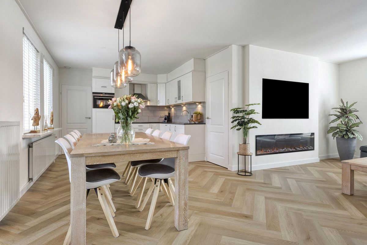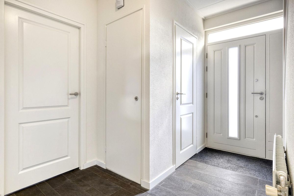 De ontvangsthal is voorzien van een nette toiletruimte en een trapopgang naar de eerste verdieping. Het woonhuis is verrassend praktisch ingedeeld. Vanuit de hal is er toegang tot de woonkamer en de multifunctionele kamer. De L-vormige woonkamer is sfeervol en staat in open verbinding met de keuken. Vanuit de woonkamer is er toegang tot de royale serre. De keuken heeft een hoekopstelling en beschikt over diverse inbouwapparaten. Aangrenzend bevindt zich de berging/bijkeuken, die is voorzien van witgoedaansluitingen en de omvormer. Tevens is er een loopdeur naar de serre. De volledige serre is uitgerust met meerdere schuifpuien. De serre is werkelijk een eyecatcher van deze woning. Over de volledige breedte van het huis gerealiseerd (ca. 70 m²), vormt deze ruimte een prachtig verlengstuk van de woonkamer. Dankzij de grote schuifpuien rondom is er volop lichtinval en een naadloze verbinding met de fraai aangelegde achtertuin.