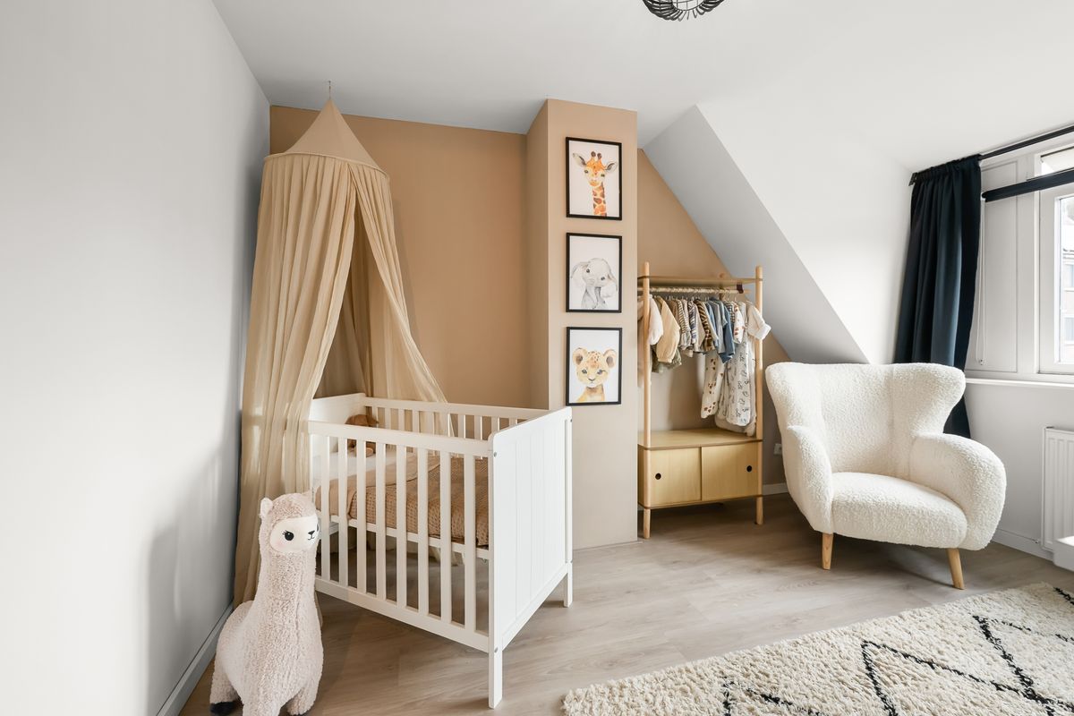 Via de vaste trap kom je op de ruime zolderverdieping met een lichte voorzolder waar de cv-installatie (2021) en aansluitingen voor wasmachine en droger zijn geplaatst. De zolderslaapkamer is recent gestuukt en afgewerkt met een nette laminaatvloer. Achter de knieschotten is bovendien praktische bergruimte aanwezig.