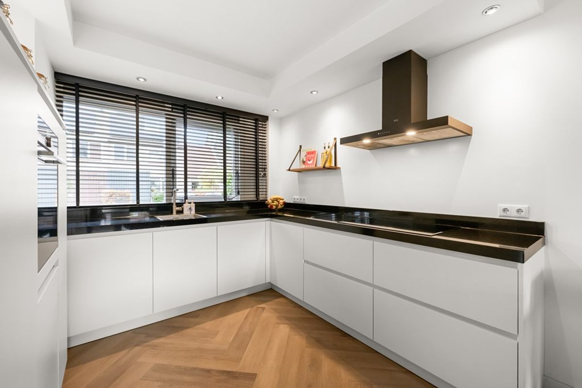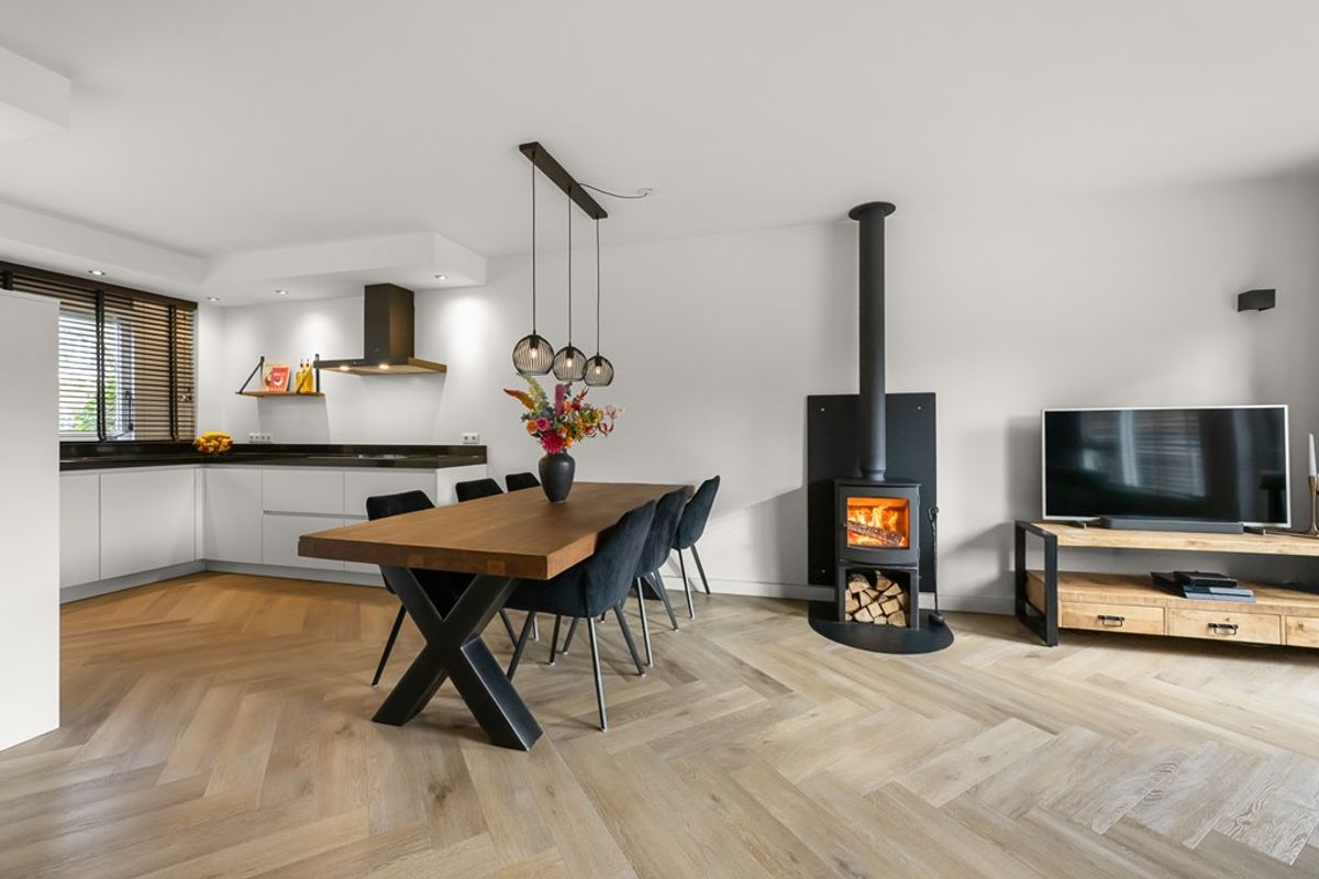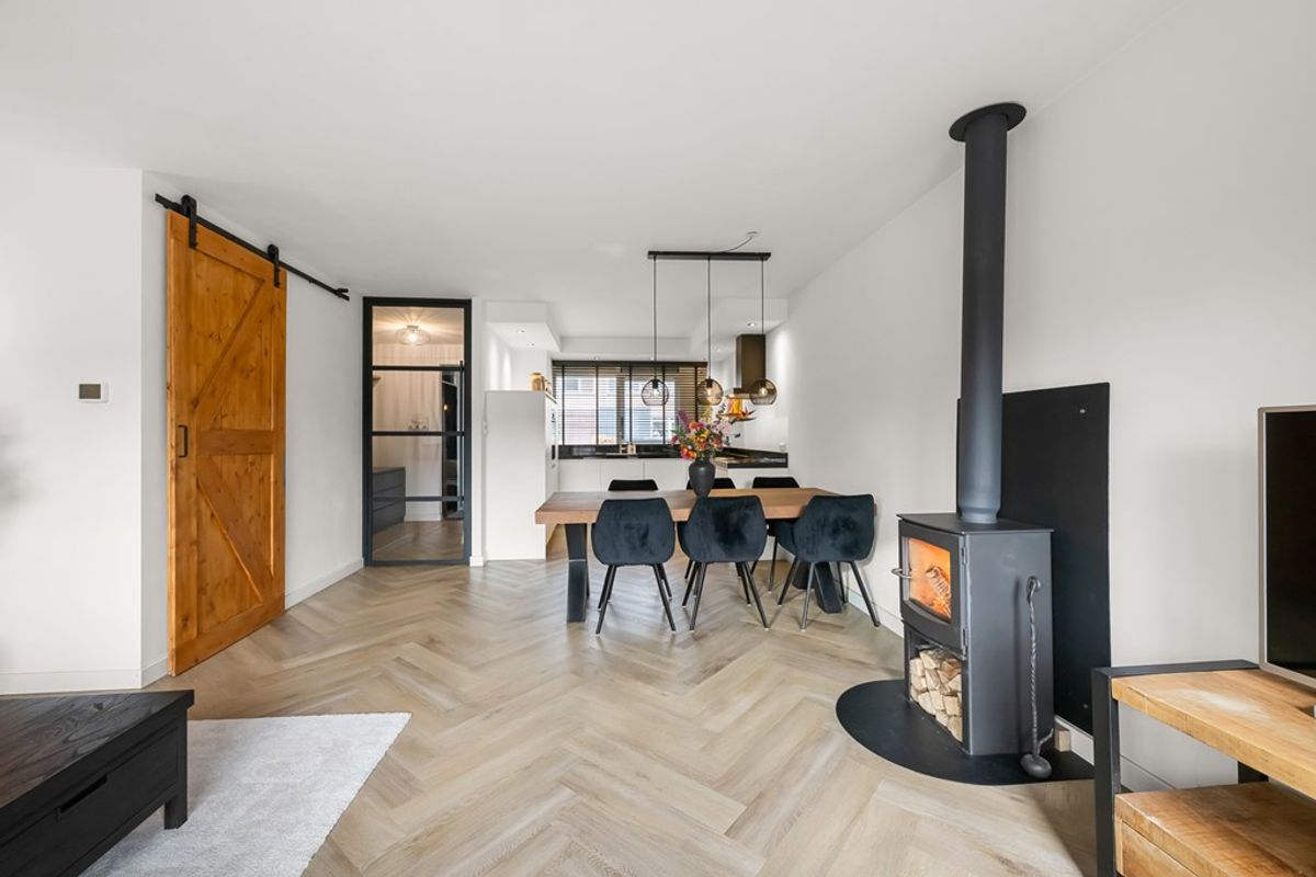 Bij binnenkomst valt direct de moderne afwerking en warme sfeer op. De woonkamer is tuingericht en voorzien van een prachtige visgraatvloer met vloerverwarming en grote ramen die zorgen voor veel lichtinval. Voor extra sfeer en warmte is er een knusse houtkachel aanwezig. De moderne keuken (2021) is volledig uitgerust met een inductiekookplaat, koel-/vriescombinatie, vaatwasser, afzuigkap en handige opberglades. De stalen deur naar de hal geeft de ruimte een stoere, eigentijdse uitstraling. Daarnaast is er een praktische trapkast aanwezig en toegang tot de verzorgde achtertuin.