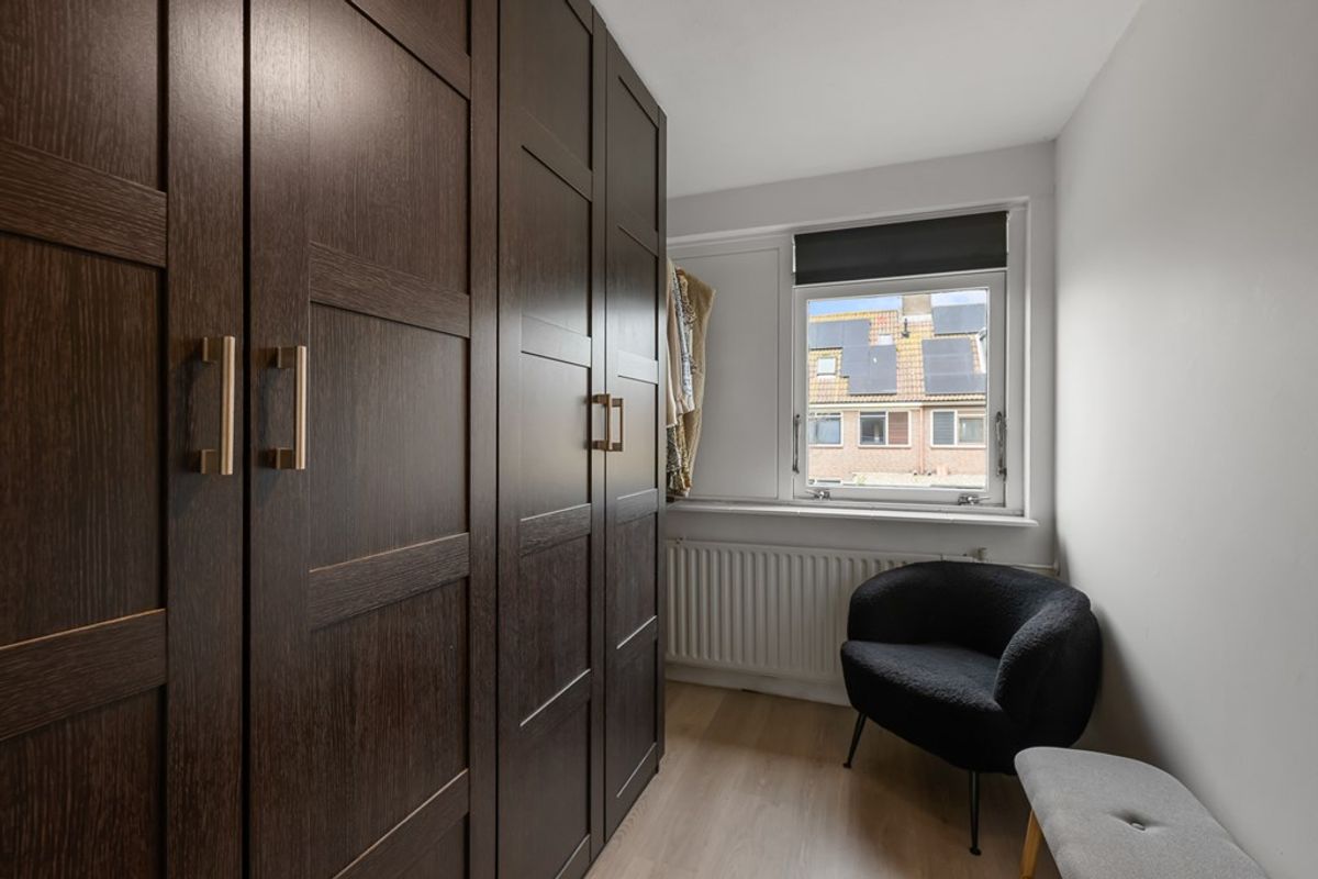 Via de vaste trap kom je op de ruime zolderverdieping met een lichte voorzolder waar de cv-installatie (2021) en aansluitingen voor wasmachine en droger zijn geplaatst. De zolderslaapkamer is recent gestuukt en afgewerkt met een nette laminaatvloer. Achter de knieschotten is bovendien praktische bergruimte aanwezig.