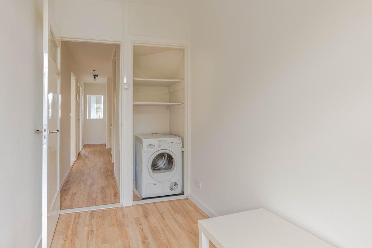 * Slaapkamer I/ werkkamer aan de voorzijde voorzien van laminaatvloer, strakke wanden en plafond en open kast met wasmachine-aansluiting.