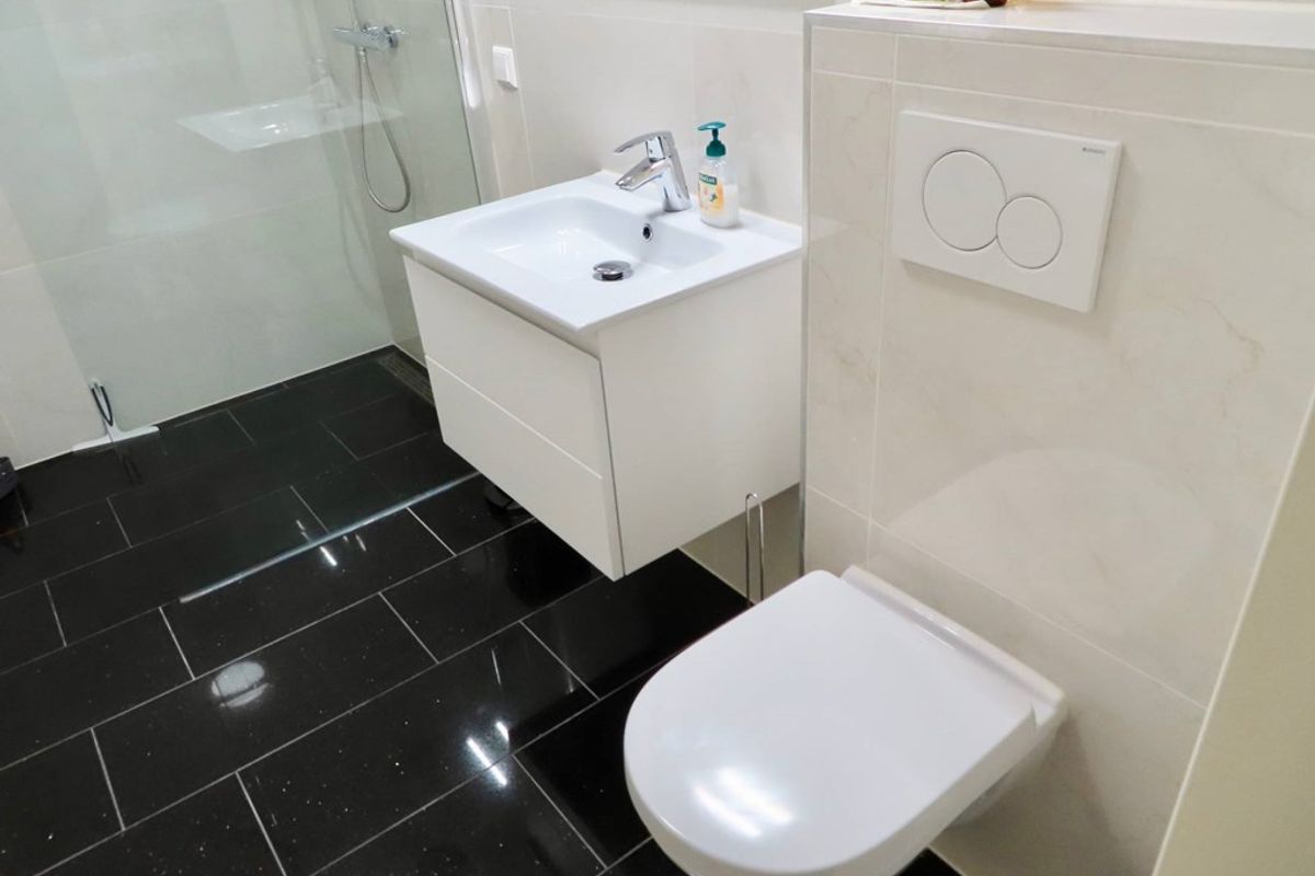 Entrance from the street to a hallway with stairs to the first floor. Entrance to the house. Hallway with doors to all rooms. Spacious living room with open kitchen. The kitchen is brand new with a dishwasher, 5-pit gas stove, built-in appliances, oven / microwave, freezer / fridge and a kitchen island.