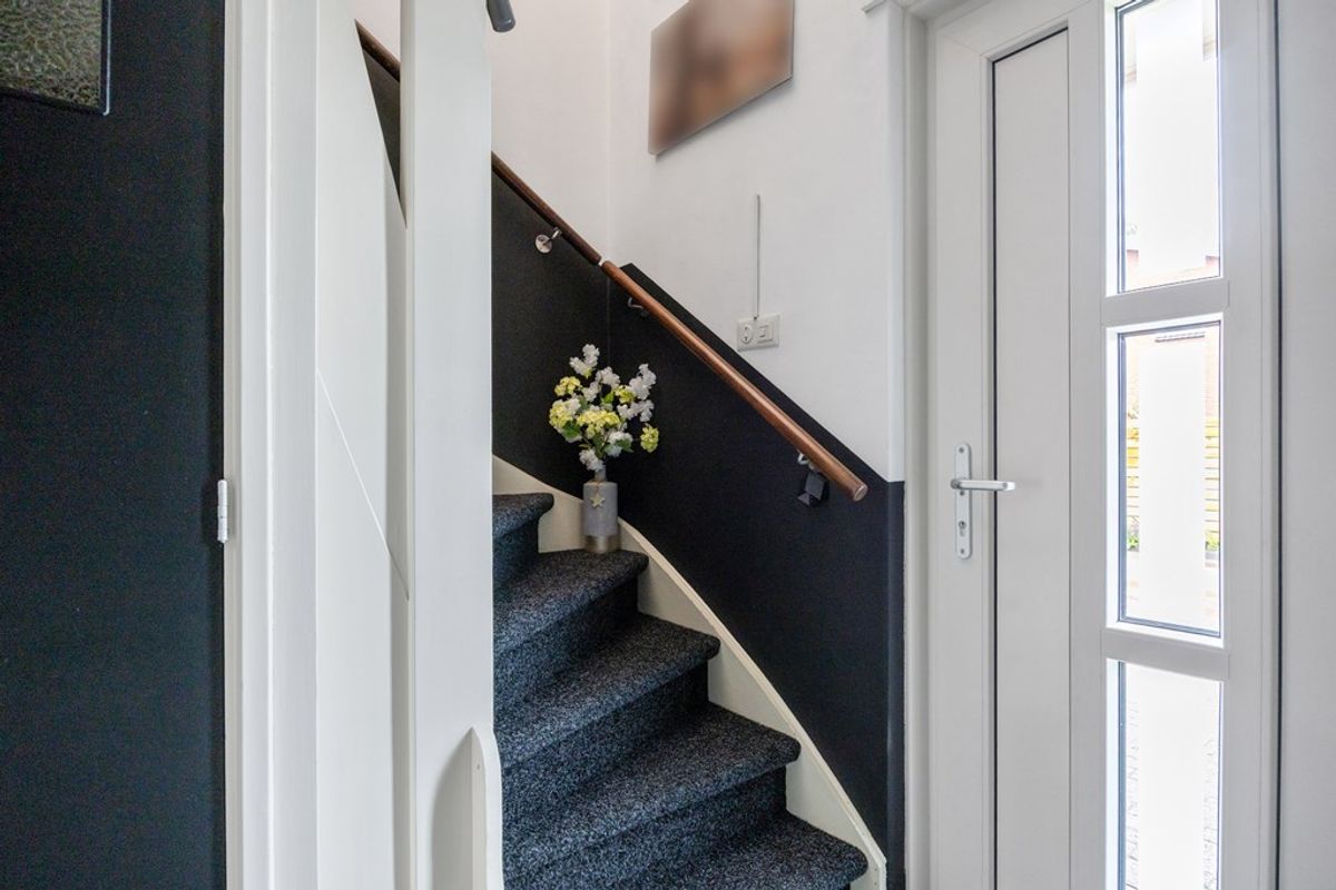 Bij binnenkomst treft u de entree met toilet, meterkast en toegang naar de eerste verdieping. De hal leidt direct naar de modern afgewerkte keuken, die in open verbinding staat met de ruime en lichte woonkamer. Dankzij elektrische screens in de woonkamer is het altijd aangenaam, ongeacht het seizoen. De woonkamer biedt toegang tot een tussenhal, vanwaar u zowel de begane grond slaapkamer als de grote tuin en overkapping bereikt.