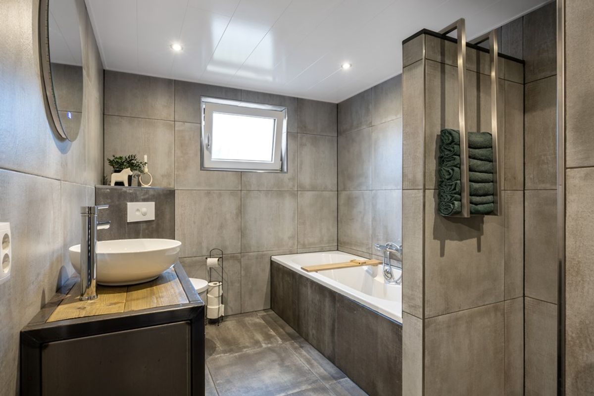 De slaapkamer op de begane grond is ideaal voor mensen die graag gelijkvloers willen wonen en voorzien van een badkamer en suite. De badkamer op de begane grond is in 2016 strak en luxe vernieuwd en biedt zowel moderne afwerkingen als comfort. Met een heerlijk ligbad, inloopdouche, een stijlvolle wastafel en een toilet is dit de perfecte plek om na een lange dag tot rust te komen.