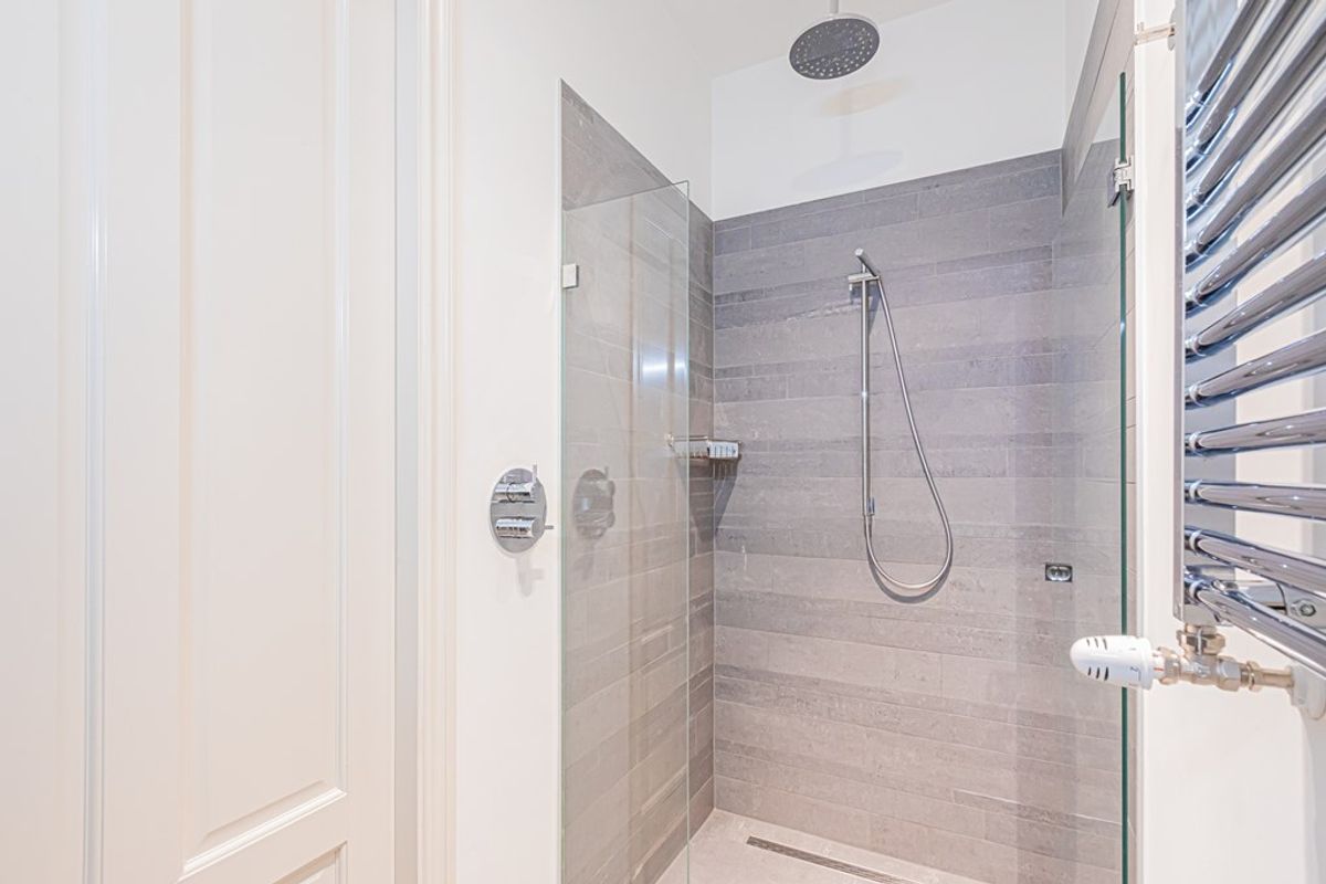 Tweede verdieping: ruime en lichte woonkamer aan de voorzijde, modern open keuken (v.v. diverse inbouwapparatuur), 2 slaapkamers (13m2 + 8m2), moderne badkamer met douche en wastafel, apart toilet, apart washok met wasmachine.