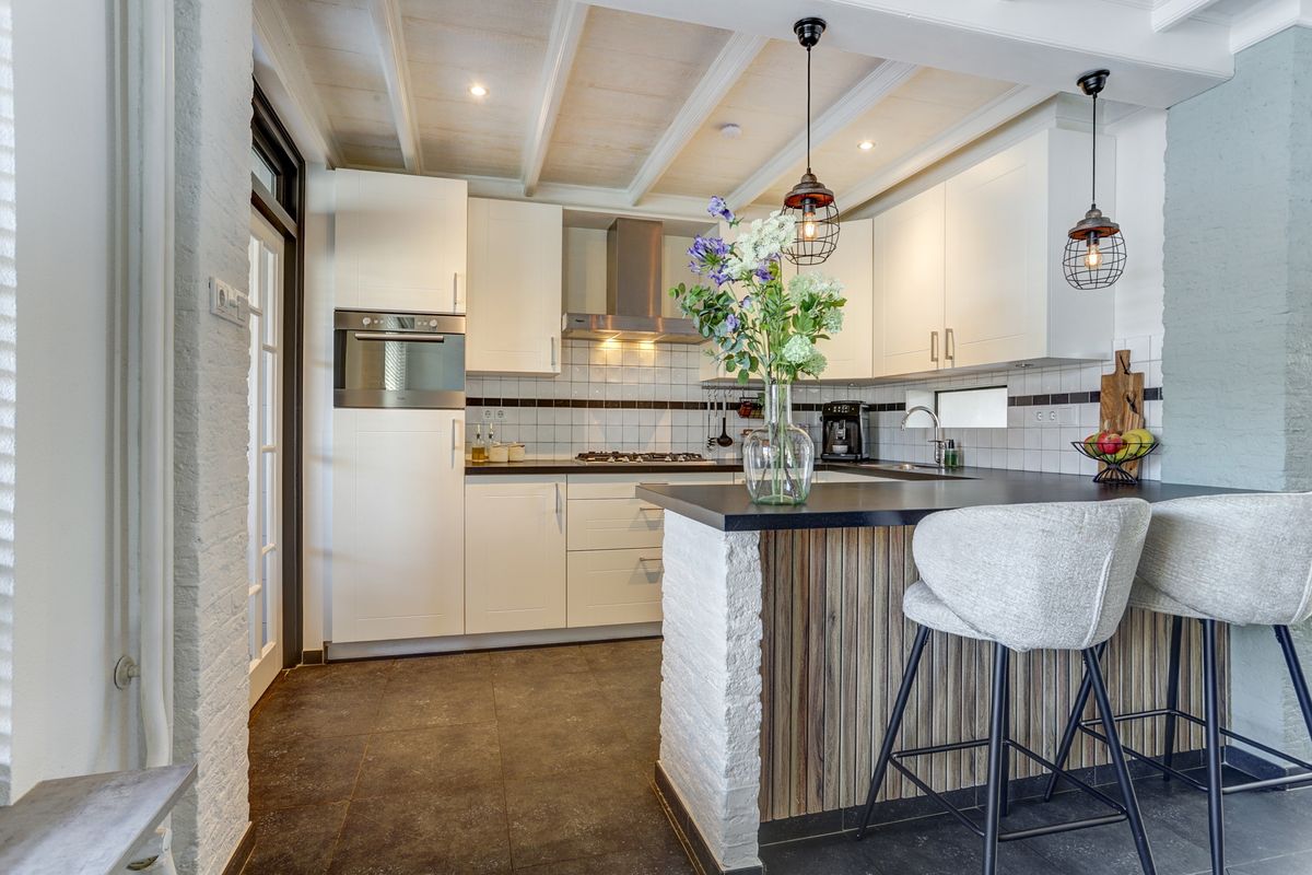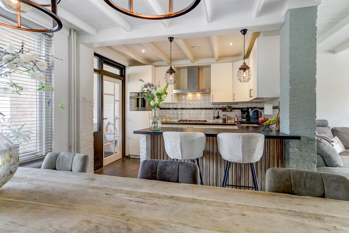 De open keuken staat in verbinding met de eethoek en is het middelpunt van de woning. De inbouwkeuken met U-opstelling beschikt over een vaatwasser, 5-pits kookplaat met wokbrander, afzuigkap, koelkast en combi-oven. De keuken heeft een bargedeelte waar je in de ochtend lekker aan kunt ontbijten. Vanuit de keuken bereik je de aanbouw waar de bijkeuken is gesitueerd.