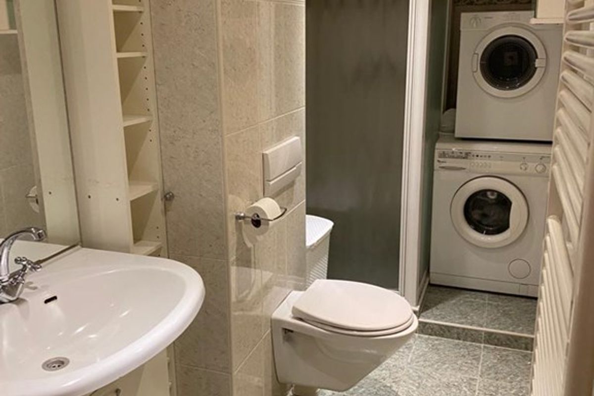 Closed and secure communal entrance, elevator or stairs to 2nd floor. Entrance to the apartment, corridor with storage room, bright living-/dining room with access to good sized balcony with afternoon and evening sun. Modern, open kitchen with built-inn appliances (fridge, dishwasher, gas hob, combi-oven and extractor hood). Cozy and comfortable bedroom with large windows. Bathroom with shower, sink with storage space, laundry space with washing machine and dryer, and toilet. Separate storage.