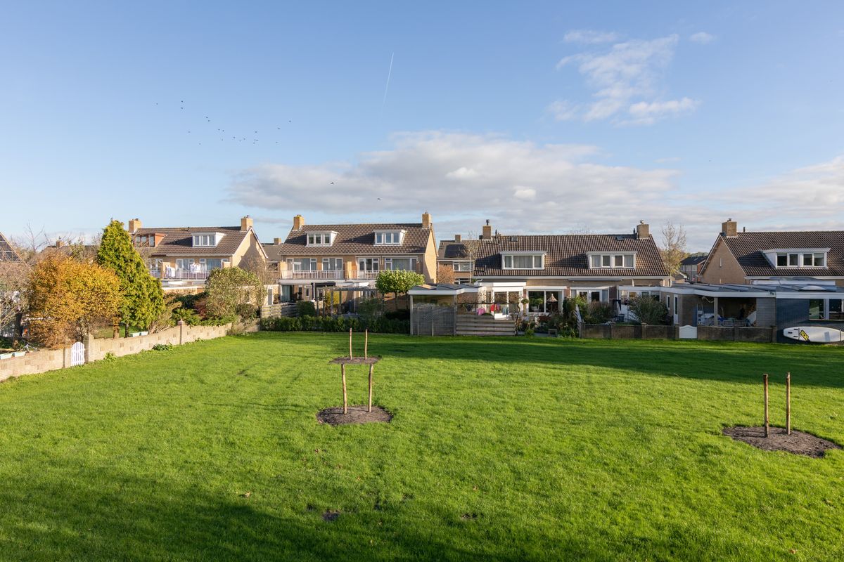 De voortuin op het zuidoosten is keurig onderhouden en voorzien van beplanting. De tuin is doormiddel van een trottoir gescheiden van de rijweg. Tevens heeft de woning aan de voorzijde een ruime oprit voor meerdere auto's. De royale achtertuin met zonligging op het noordwesten is fraai aangelegd en voorzien van sierbestrating, borders en beplanting.