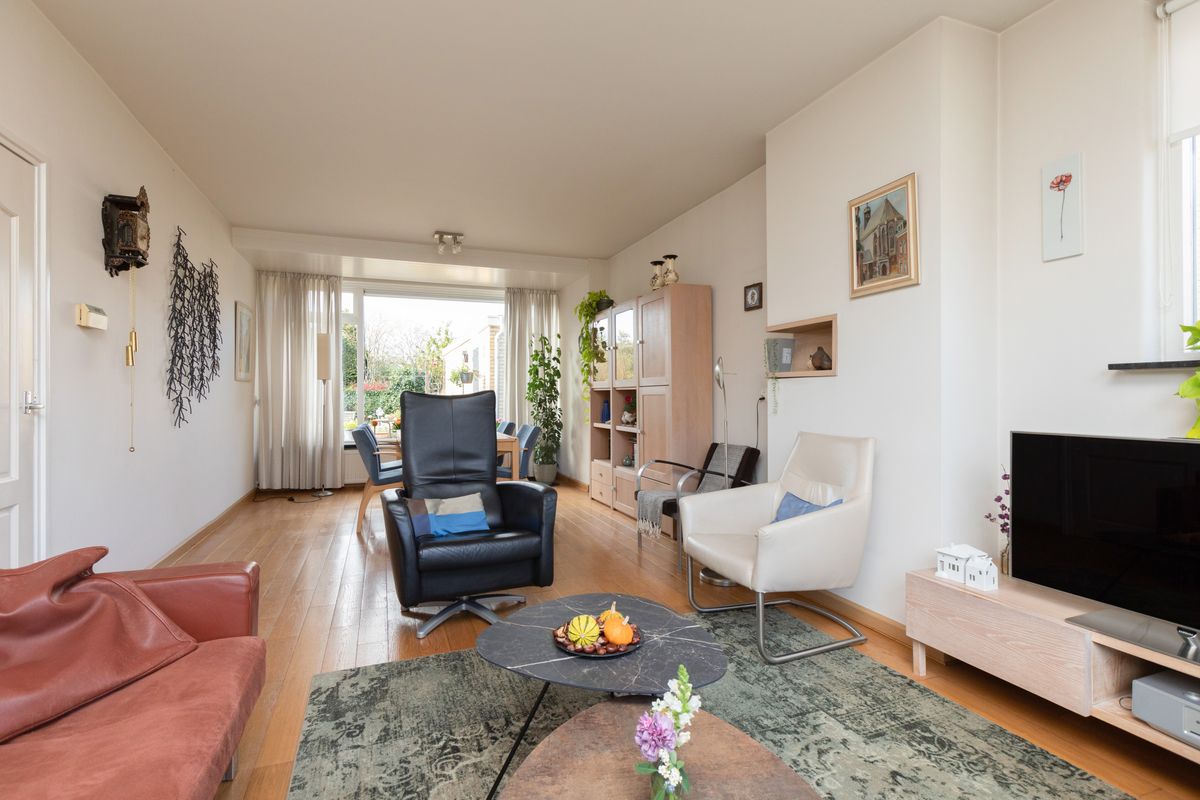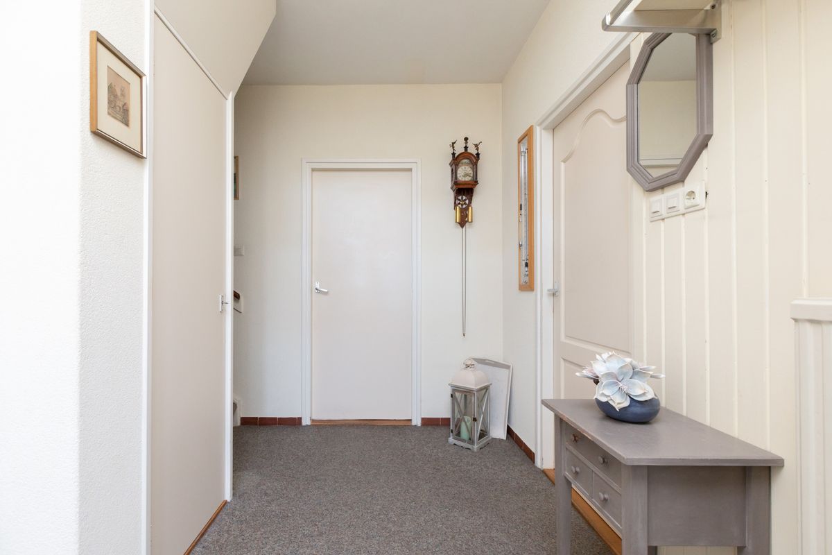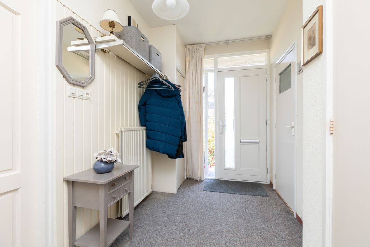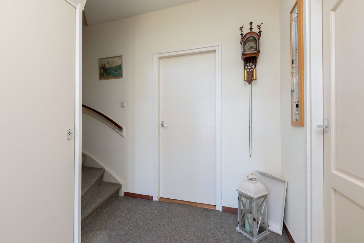 Entree, toilet, meterkast, kelderkast en de trapopgang. De woning beschikt over een ruime woonkamer met veel lichtinval door de grote raampartijen aan voor- en achterzijde. Vanuit de woonkamer is er een ruim uitzicht door de straat. De gesloten keuken heeft goed bruikbare afmetingen met een keukenblok in wandopstelling aan beide zijden. Vanuit de keuken is er toegang naar de aangebouwde bijkeuken met een toegangsdeur naar de achtertuin. De bijkeuken heeft plaats voor de witgoedaansluitingen. De beschutte achtertuin heeft een goede zonligging op het zuidwesten en is ook bereikbaar via de toegangsdeur vanaf de eigen oprit. De ruime garage heeft een lengte van 7,1 m. en is voorzien van elektra en een deur naar de achtertuin.