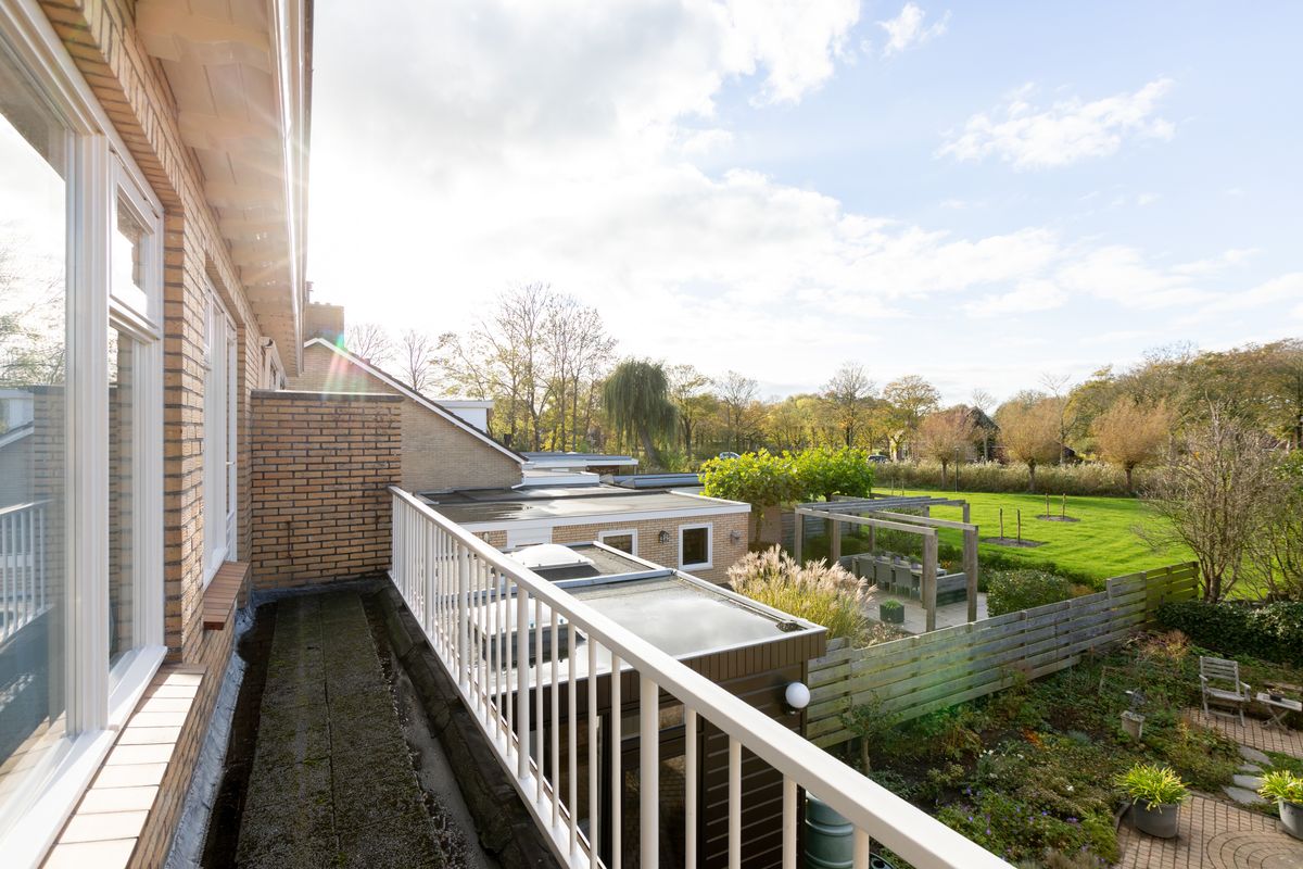 De hele achterzijde van de eerste verdieping beschikt over een balkon. Het balkon is bereikbaar via een deur in de slaapkamer. Van hieruit heb je een prachtig uitzicht over de achter gelegen groenstroken en de leeuwardervaart.