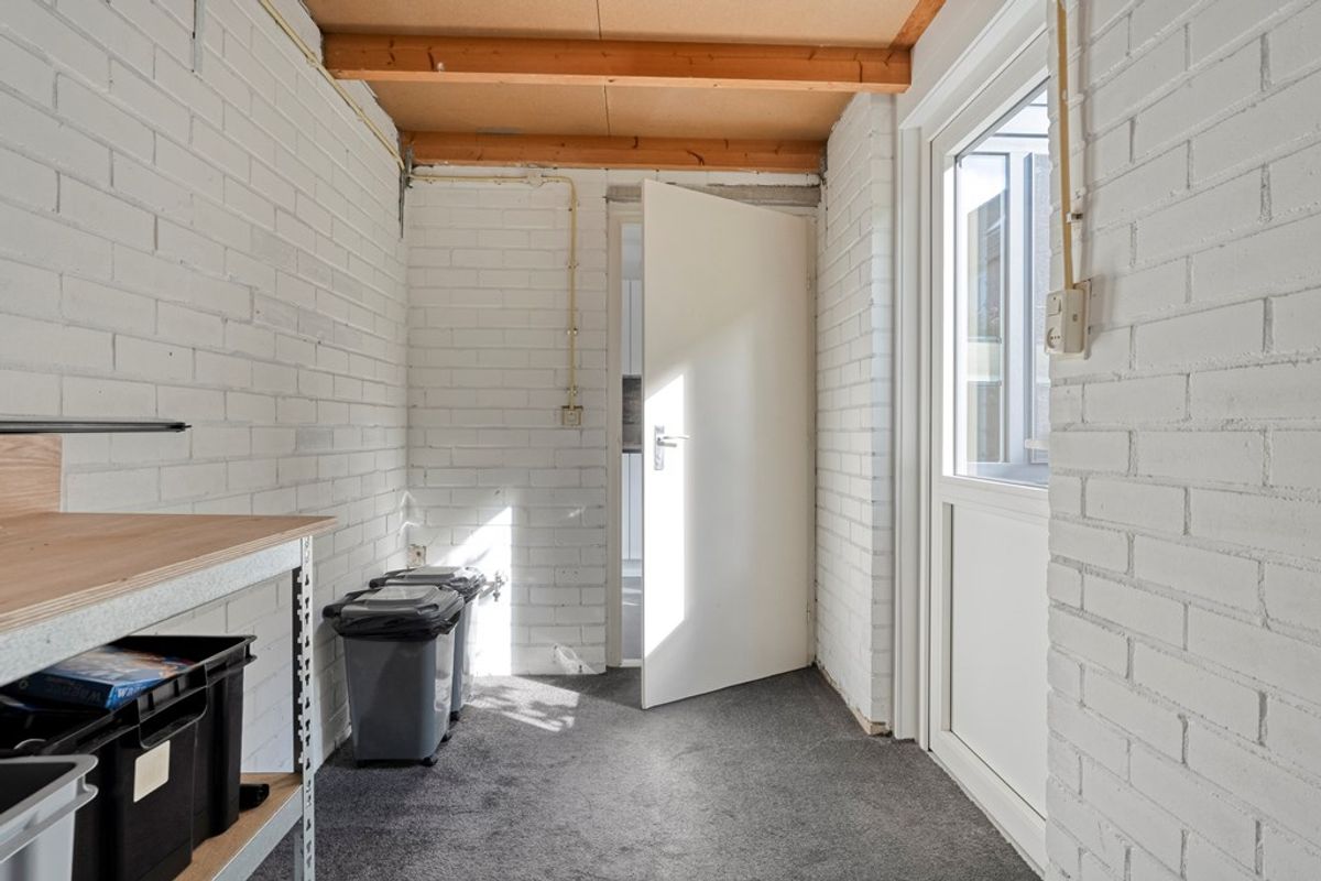 Entree/hal met meterkast en toilet; Ruime woonkamer met trapkast; Open keuken (2020) voorzien van een inductie kookplaat, afzuigkap, koelkast vaatwasser en een combimagnetron; Praktische bijkeuken/berging.
