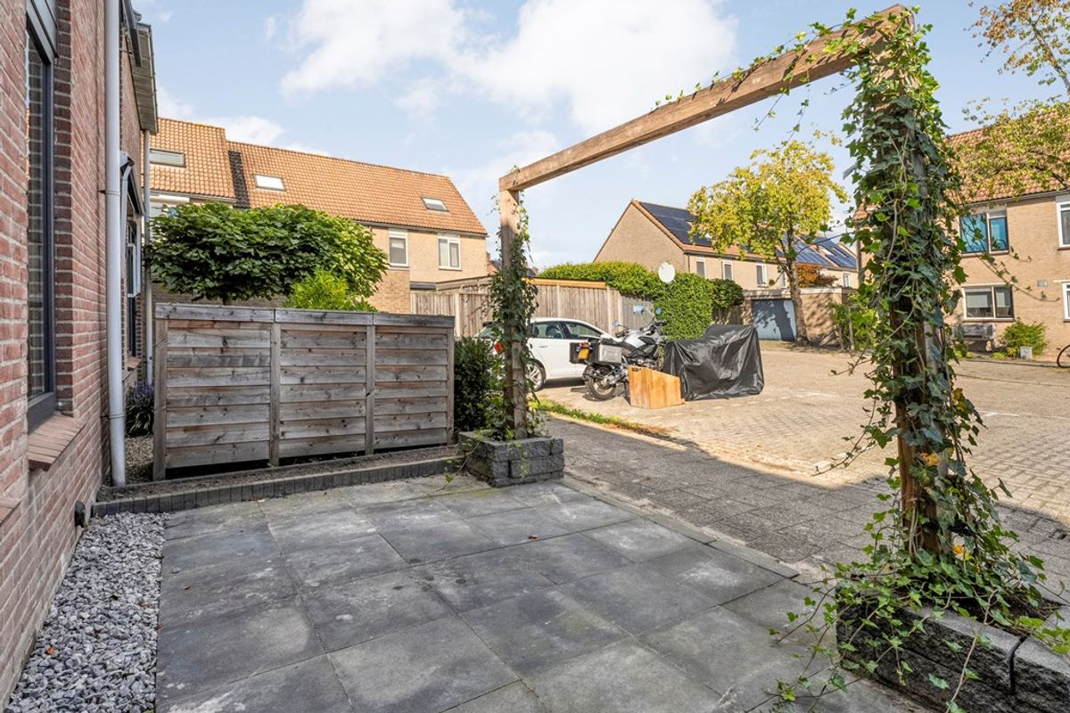De achtertuin is gelegen op het Westen en is ook bereikbaar middels een achterom.