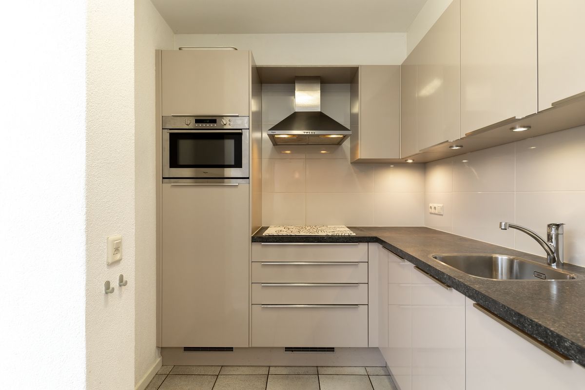 De keuken uit 2018 is een fijne plek om te kokkerellen. Het granieten werkblad geeft de keuken een verzorgde uitstraling en alle benodigde apparatuur is aanwezig: een inductiekookplaat, vaatwasser, koelkast, afzuigkap en combimagnetron. De praktische indeling zorgt ervoor dat alles binnen handbereik is.