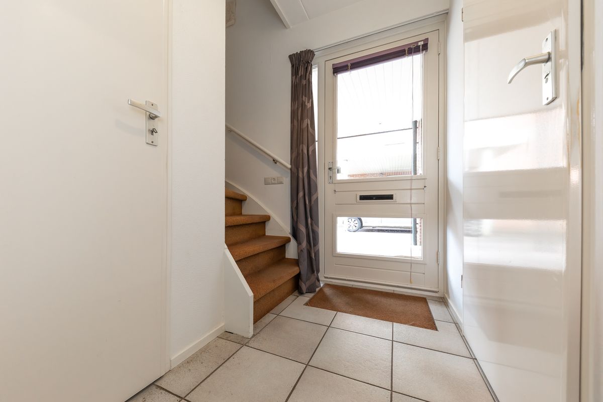 Op de oprit is ruimte voor twee auto’s, waaronder één onder de carport. Via de overdekte entree komt u in de hal, die toegang biedt tot de woonkamer en het toilet. De plavuizen vloer die u hier aantreft, loopt door in de woonkamer en keuken, wat zorgt voor een mooie eenheid op de begane grond.