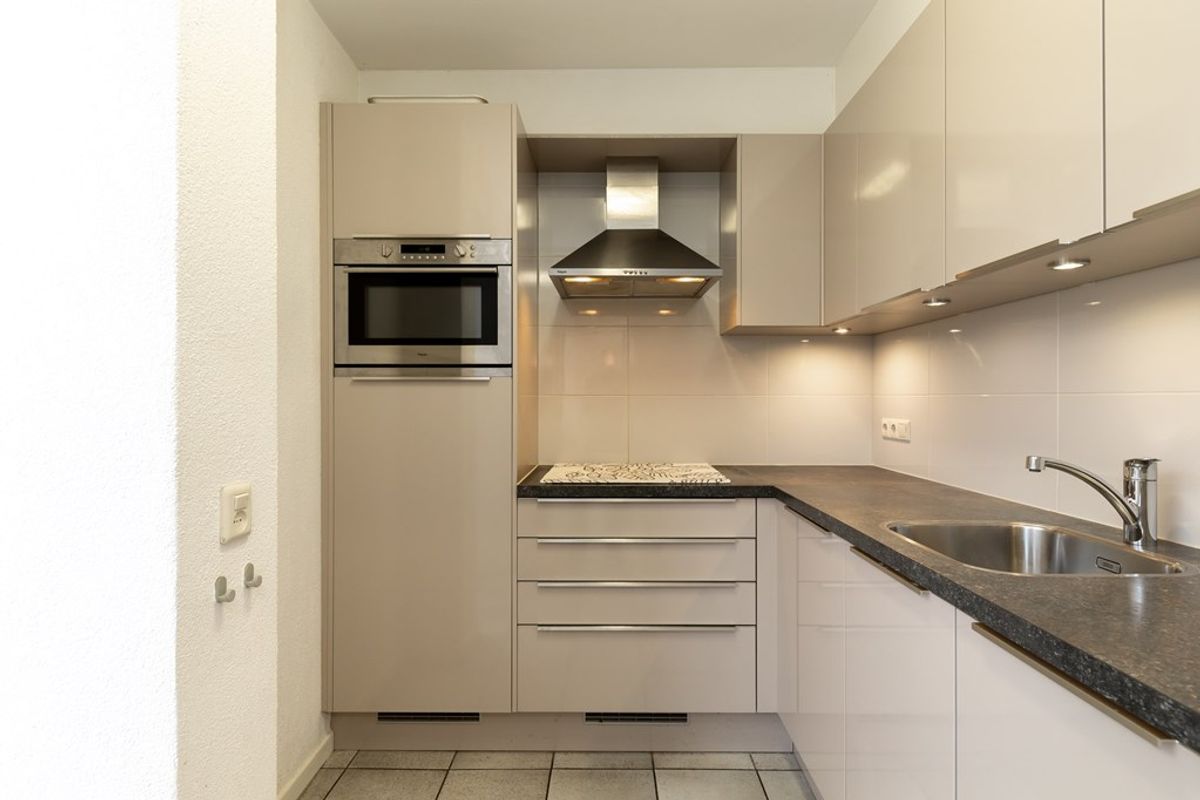 De keuken uit 2018 is een fijne plek om te kokkerellen. Het granieten werkblad geeft de keuken een verzorgde uitstraling en alle benodigde apparatuur is aanwezig: een inductiekookplaat, vaatwasser, koelkast, afzuigkap en combimagnetron. De praktische indeling zorgt ervoor dat alles binnen handbereik is.