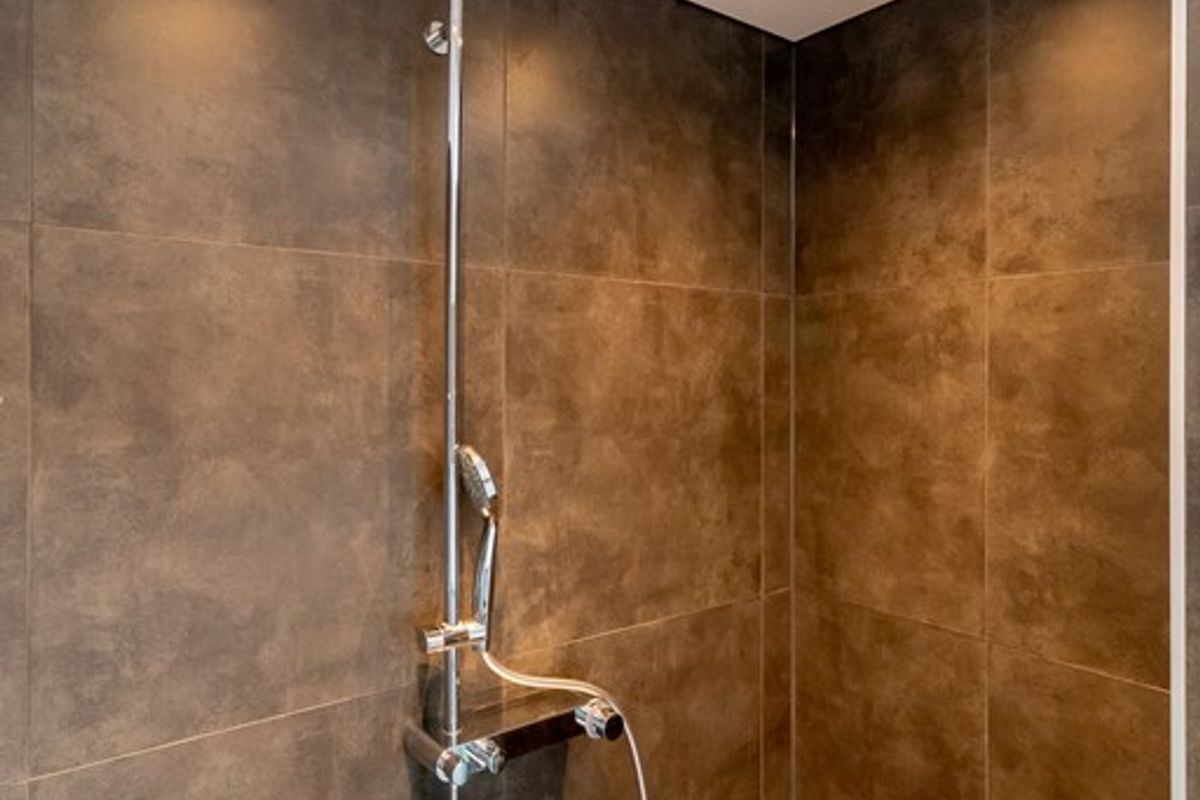De badkamer is functioneel ingericht en voorzien van vloerverwarming. Geen koude voeten tijdens het tandenpoetsen dus! De dubbele wastafel met strak meubel zorgt ervoor dat u elkaar niet in de weg zit tijdens het ochtendritueel. De inloopdouche is voorzien van zowel een luxe regendouche als een praktische handdouche, waarbij de handige nis in de wand uw doucheproducten binnen handbereik houdt. Extra prettig is het raam, waardoor u niet alleen van daglicht geniet maar ook voor natuurlijke ventilatie zorgt. Tot slot geeft de combinatie van witte en antracietgrijze tegels de badkamer een eigentijdse uitstraling.